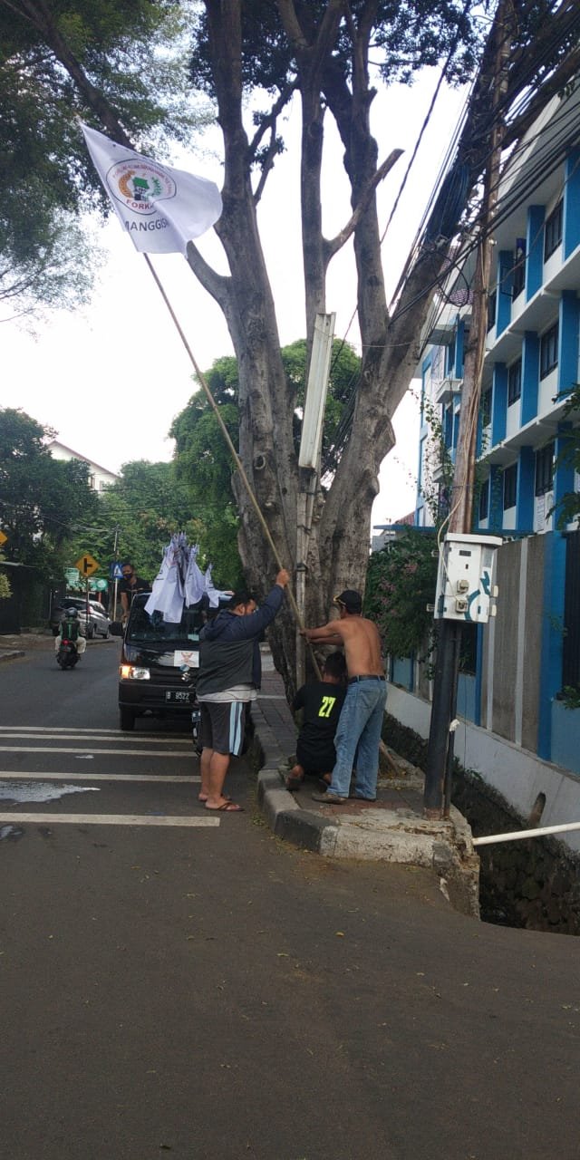 Pemasangan bendera Forkabi yang di lakukan oleh jajaran pengurus dan anggota DPRT forkabi Kemanggisan pimpinan bang yudo bontot. Total bendera siapkan dan terpasang 100 Bendera yang tersebar dan terpasang di 100titik wilayah kemanggisan jakarta barat.