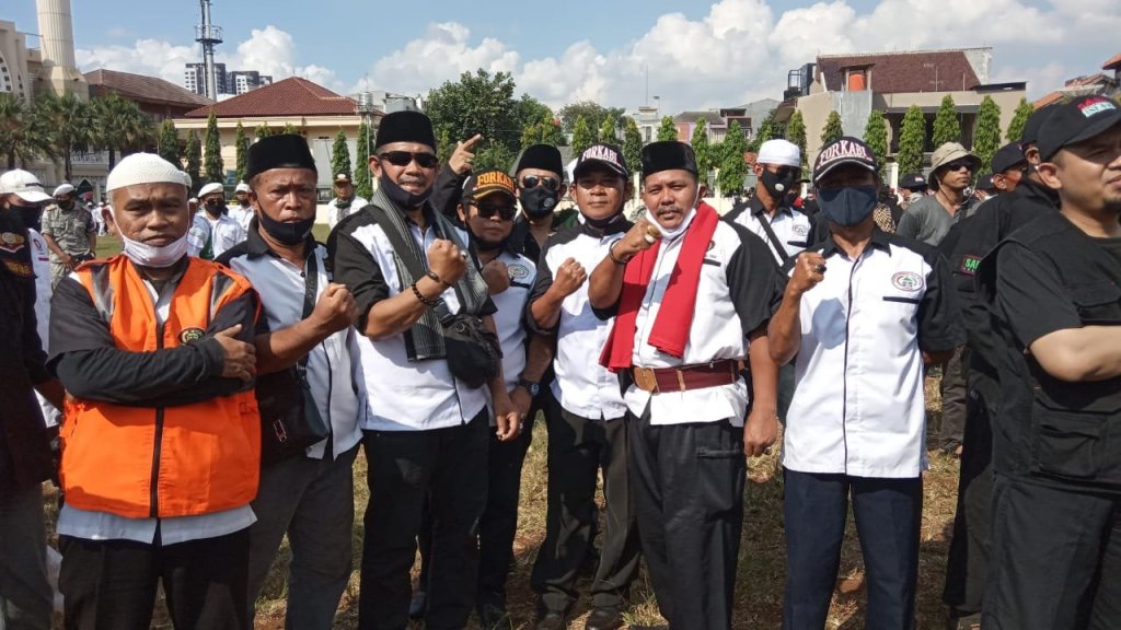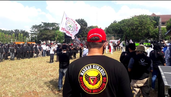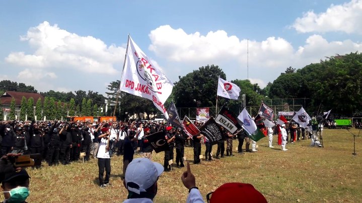 Forkabi News- Ribuan massa aksi ‘Apel Siaga Ganyang Komunis Jabodetabek’ TOLAK dan CABUT Rancangan Undang – undang Haluan Ideologi Pancasila (RUU HIP) mendatangi lapangan Ahmad Yani, Jalan Praja, Kebayoran Lama, Jakarta Selatan, Minggu (5/7).