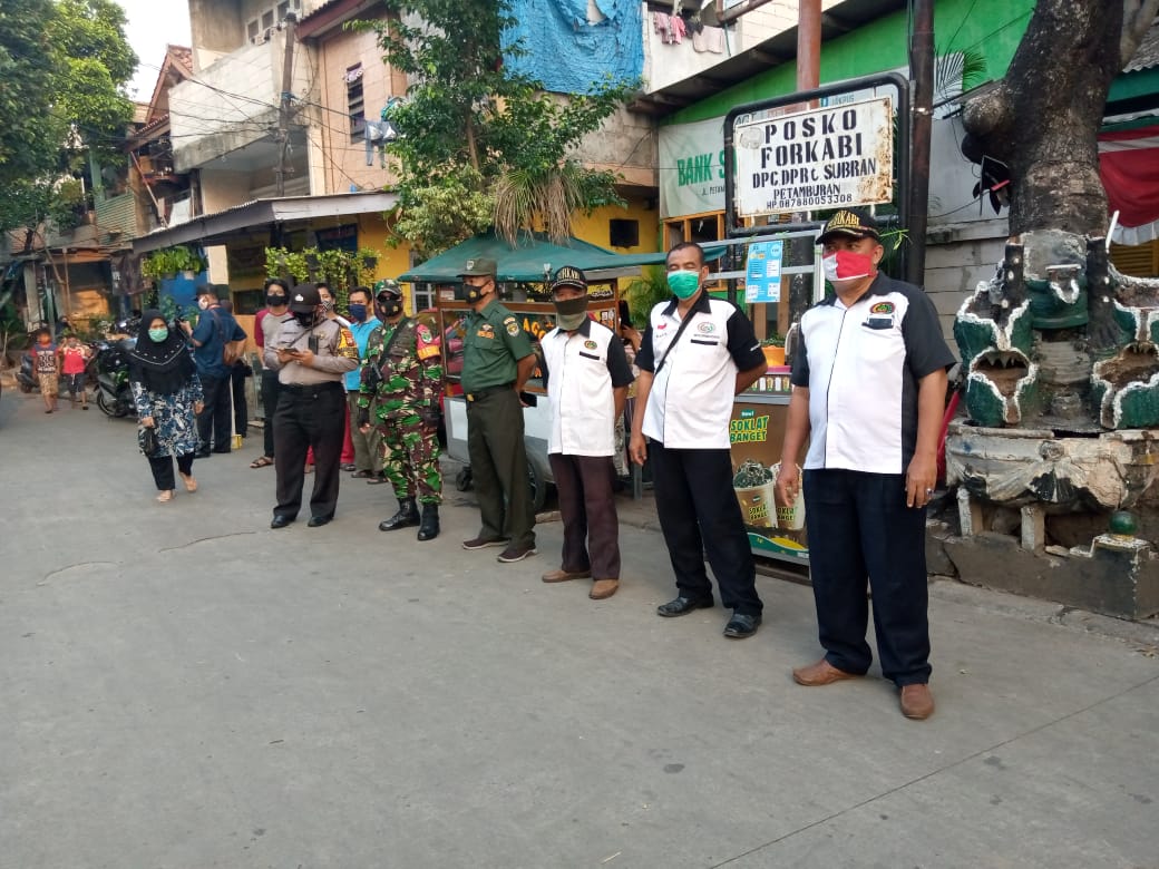 Organisasi Masyarakat Forum Komunikasi Anak Betawi (FORKABI) tingkat Dewan Pimpinan Ranting (Dprt) Forkabi kelurahan kecamatan tanah abang, jakarta pusat ikut serta dalam kegiatan Pembatasan Sosial Berskala Besar (Psbb).