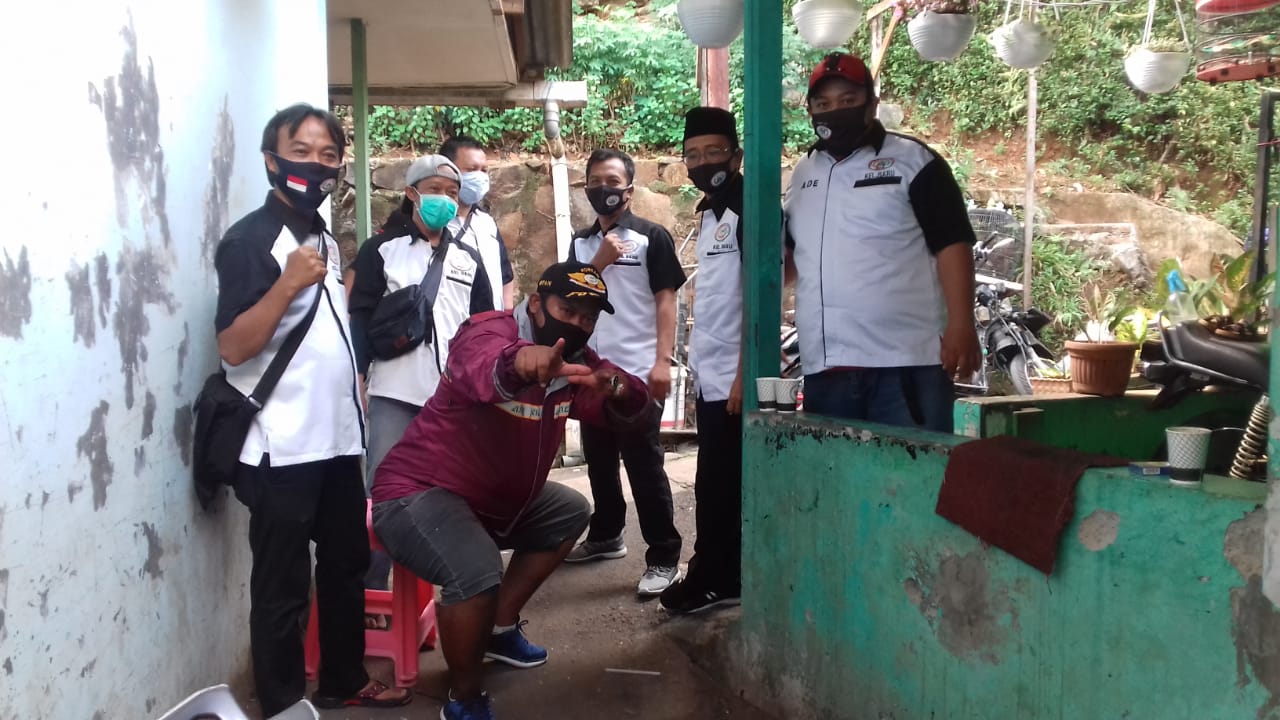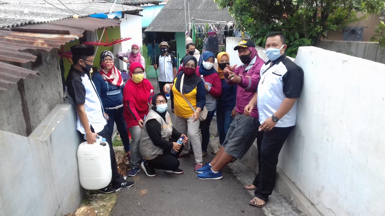 Puluhan anggota forkabi dan pengurus forkabi dalam aksi penyemprotan desinfektan anti virus corona pastinya dalam protokol kesehatan dari pemerintah 3M: Mencuci tangan, Memakai masker, Menjaga jarak.