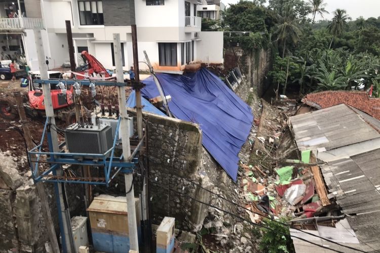 Peristiwa longsor turap milik perumahan melati residence yang menimpa rumah warga di jalan damai 2 rt 04/ rw 12 hancur berantakan akibat tanah dan puin pagar rubuh mengakibatkan 4 rumah hancur dan korban terwas serta luka-luka. (Warga)