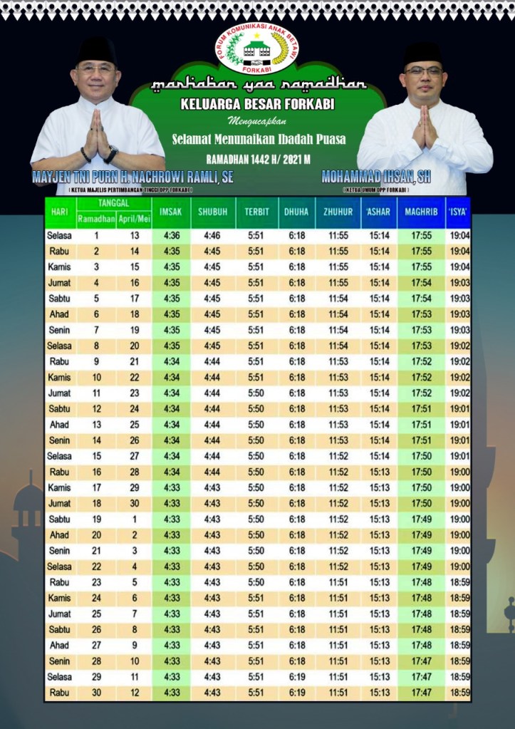 “Bulan suci Ramadhan sudah di depan mata, bulan yang penuh keberkahan, bulan yang penuh dengan ampunan. Perlu kesiapan mental yang matang dan kejernihan hati tuk menyambutnya. Sudilah kiranya, membuka pintu hati tuk menerima ucapan kami, Minal Aidin Wal Faidzin, mohon maaf lahir dan bathin. Semoga kita diberi kekuatan dan keringanan dalam menjalankan ibadah shaum.”