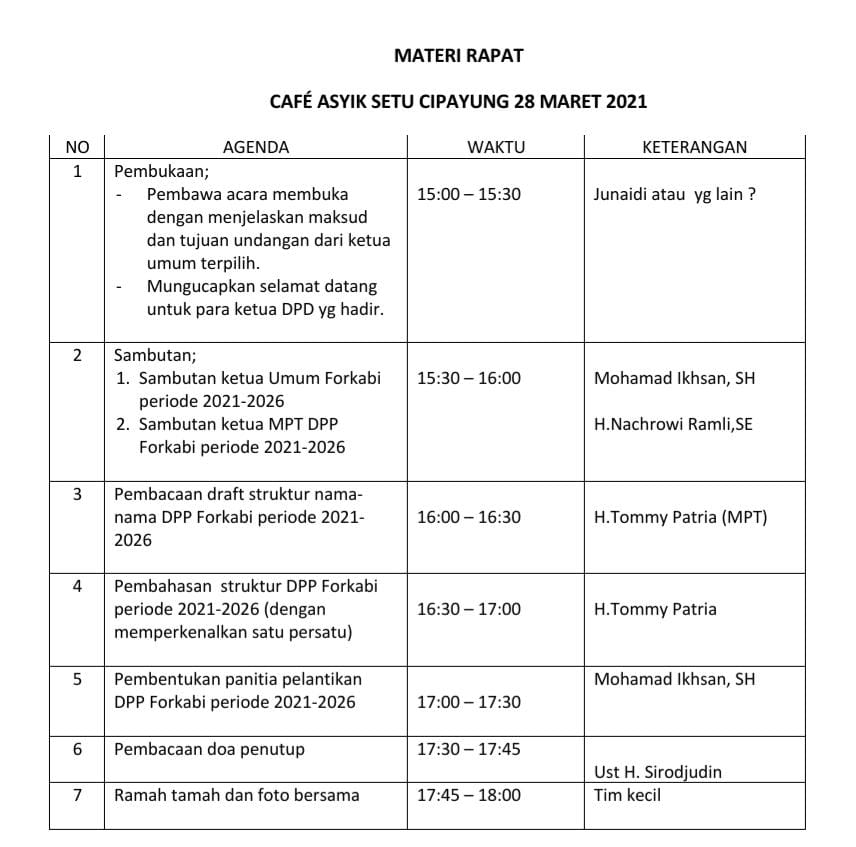 Keterangan: Pembentukan struktural DPP FORKABI (Rahasia)