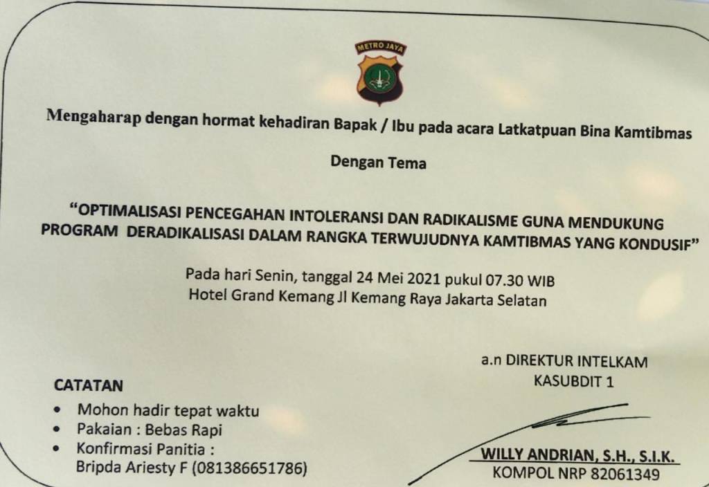 Dengan tema : “OPTIMALISASI PENCEGAHAN INTOLERANSI DAN RADIKALISME GUNA MENDUKUNG PROGRAM DERADIKALISASI DALAM RANGKA TERWUJUDNYA KAMTIBMAS YANG KONDUSIF”