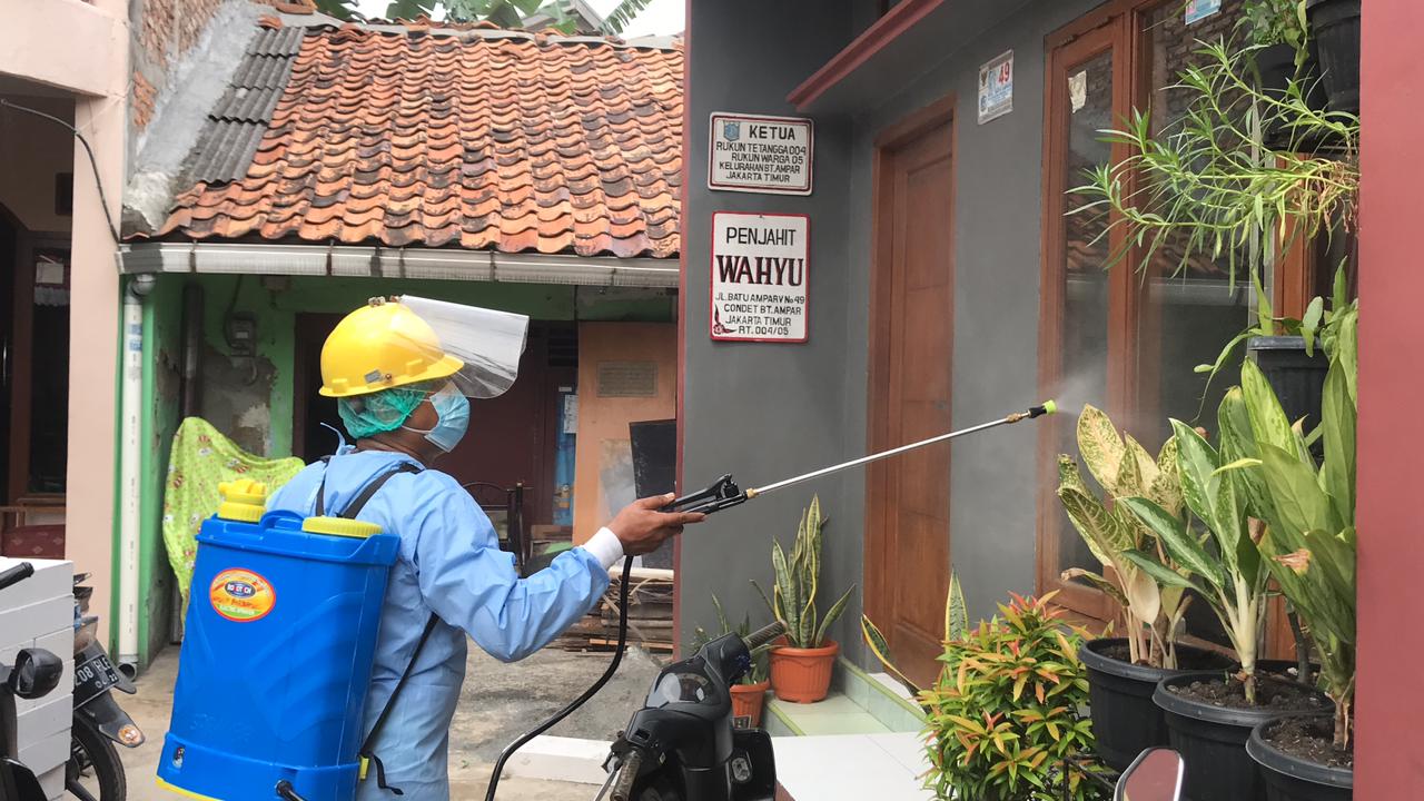 Penyemprotan desinfektan covid-19 menyisir ke lingkungan permukiman warga untuk mencegah penyebaran mata rantai covid-19 dan guna kewaspadaan dini untuk lingkungan masyarakat serta sumber daya manusia lingkungan sekitar. Kramat jati