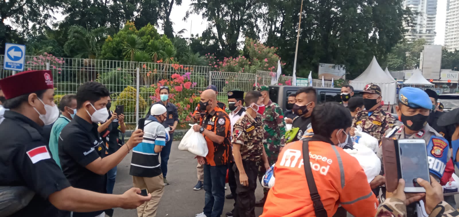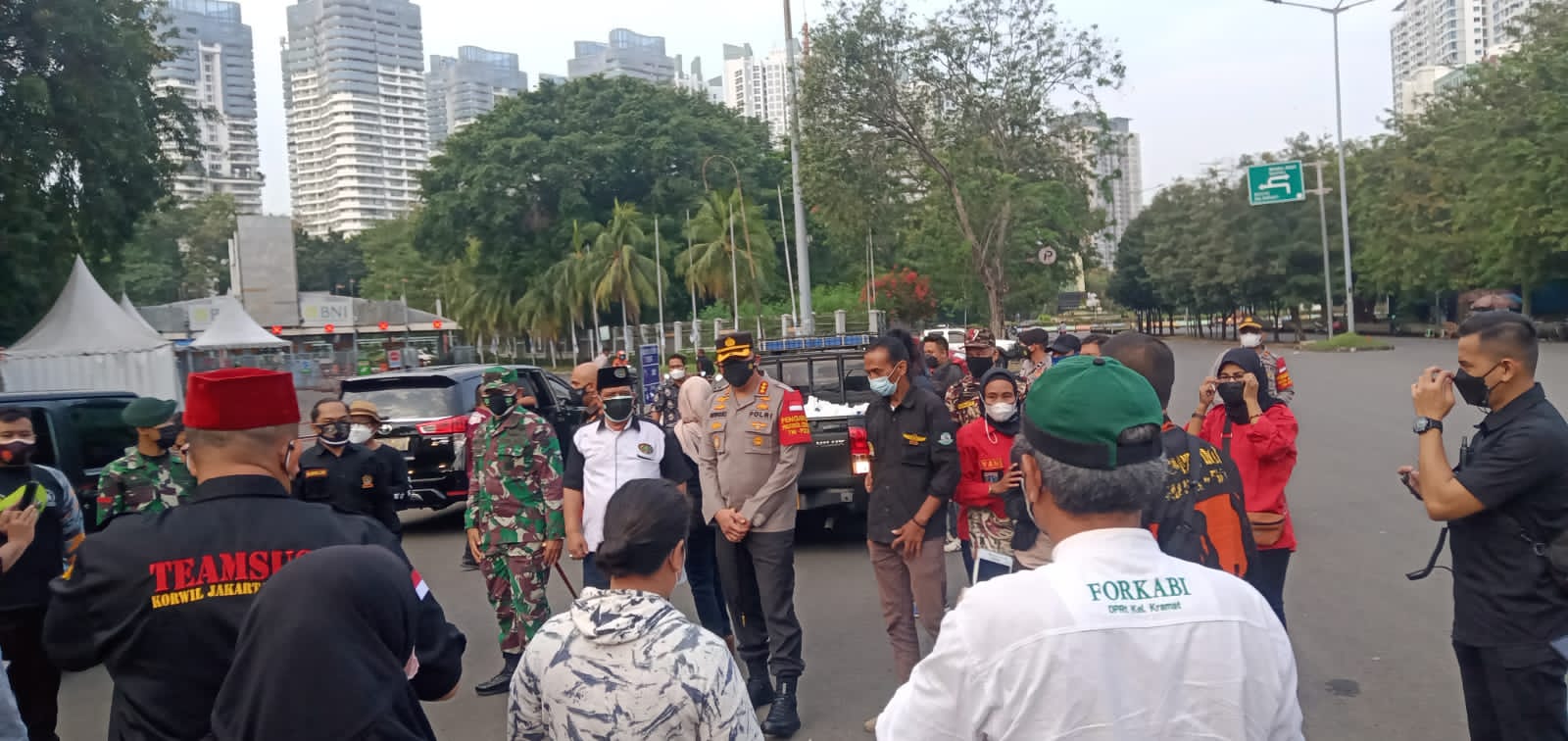 Sejumlah ormas yang tergabung dalam Forum Lintas Ormas mendampingi untuk membantu Kapolres dan Dandim terjun langsung di lapangan dalam pembagian bantuan sosial paket sembako ke masyarakat (warga) yang terdampak ppkm darurat. Bang H Jamal ketua DPD Forkabi Jakarta pusat