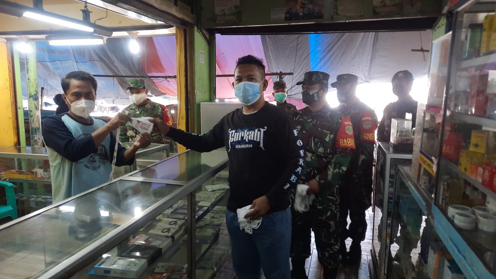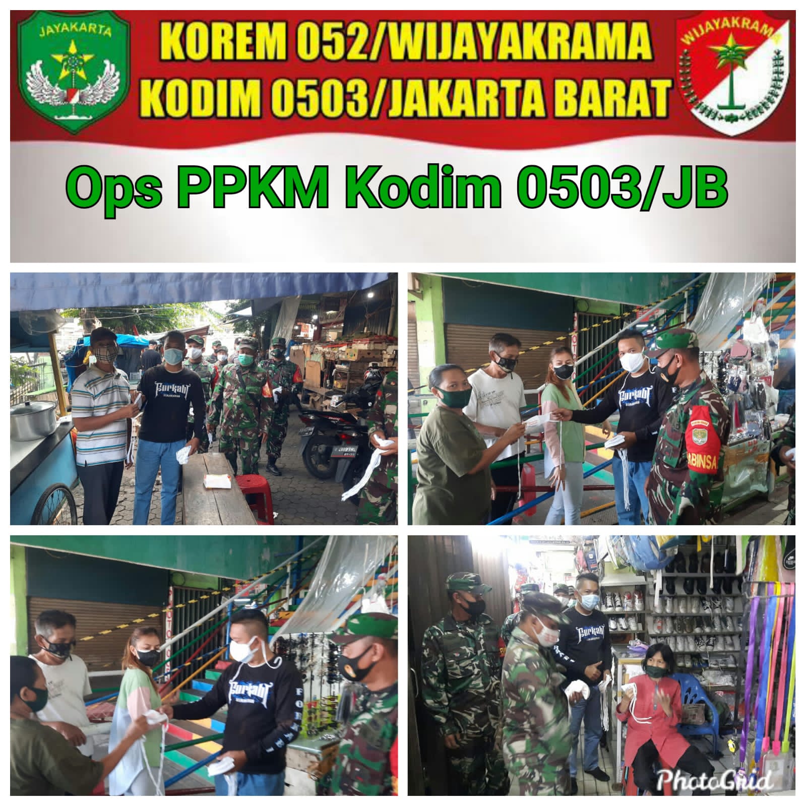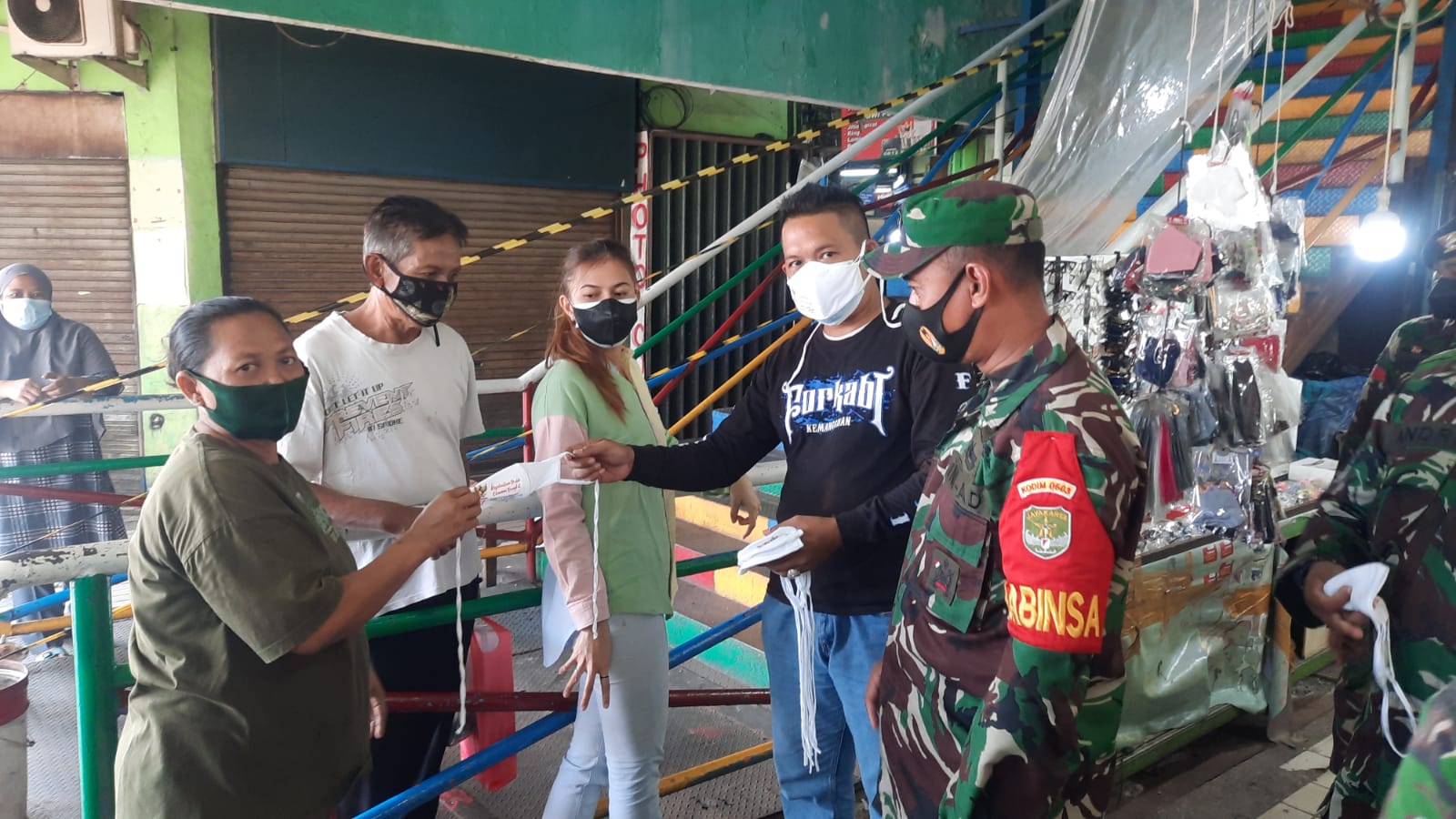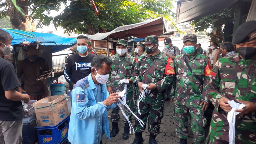 Pembagian masker gratis yang dilaksanakan oleh Koramil 03/GP berkolaborasi bersama ormas Forkabi dan dibantu Security menyasar kepada para pengunjung, pedagang dan pembeli yang ada di Pasar Slipi.