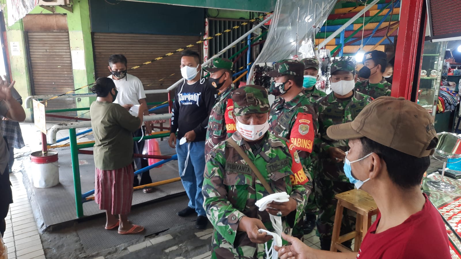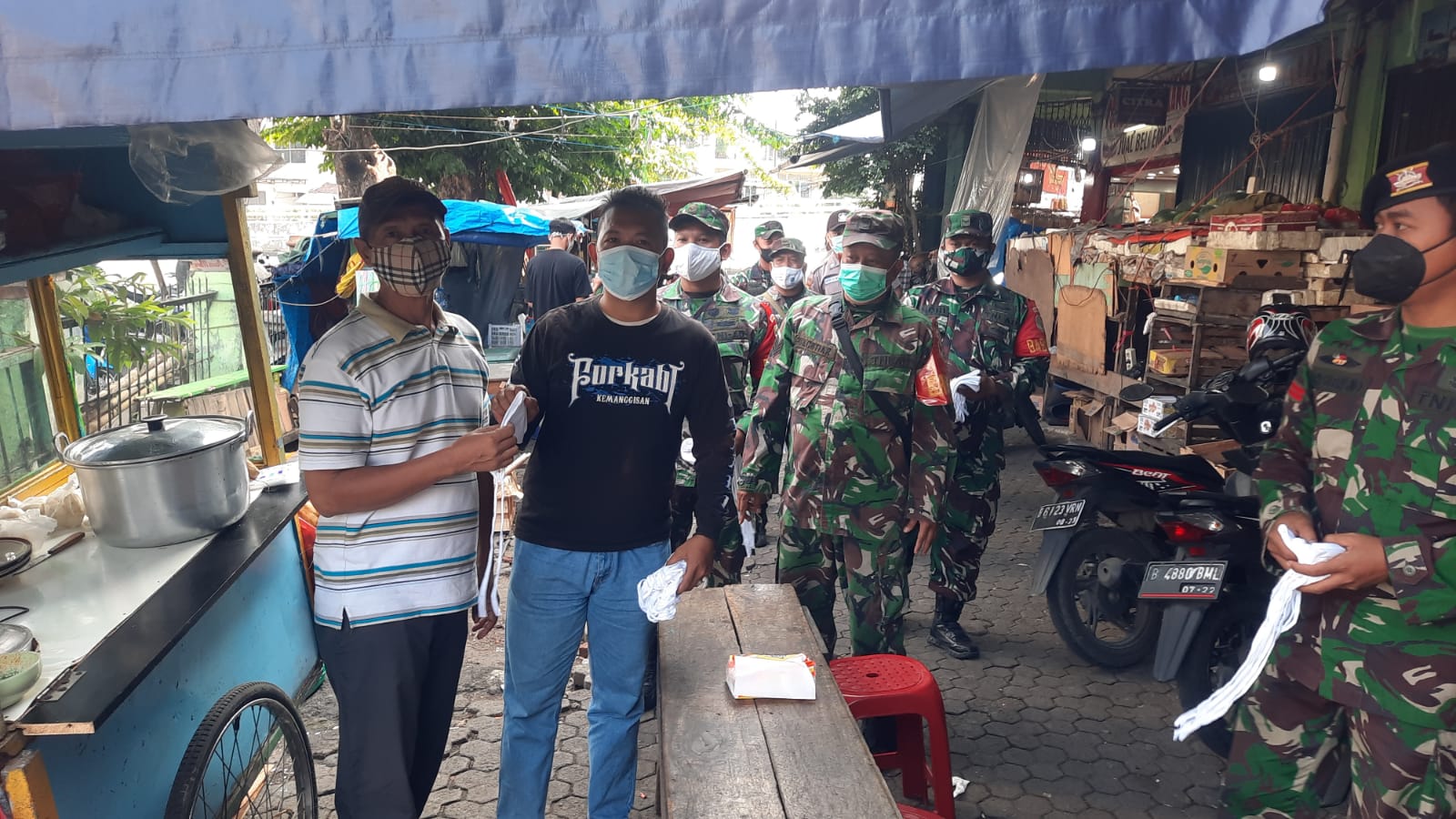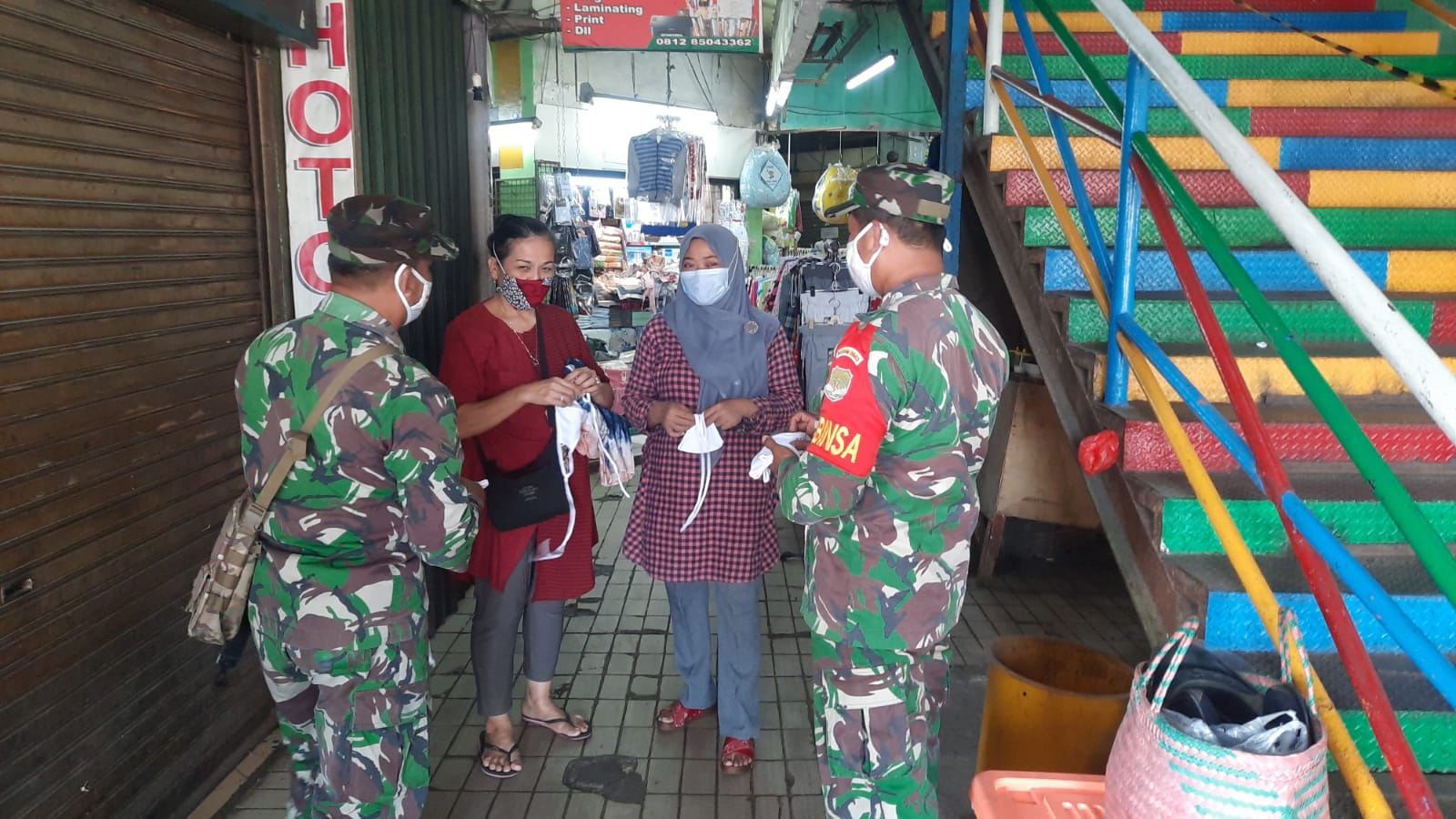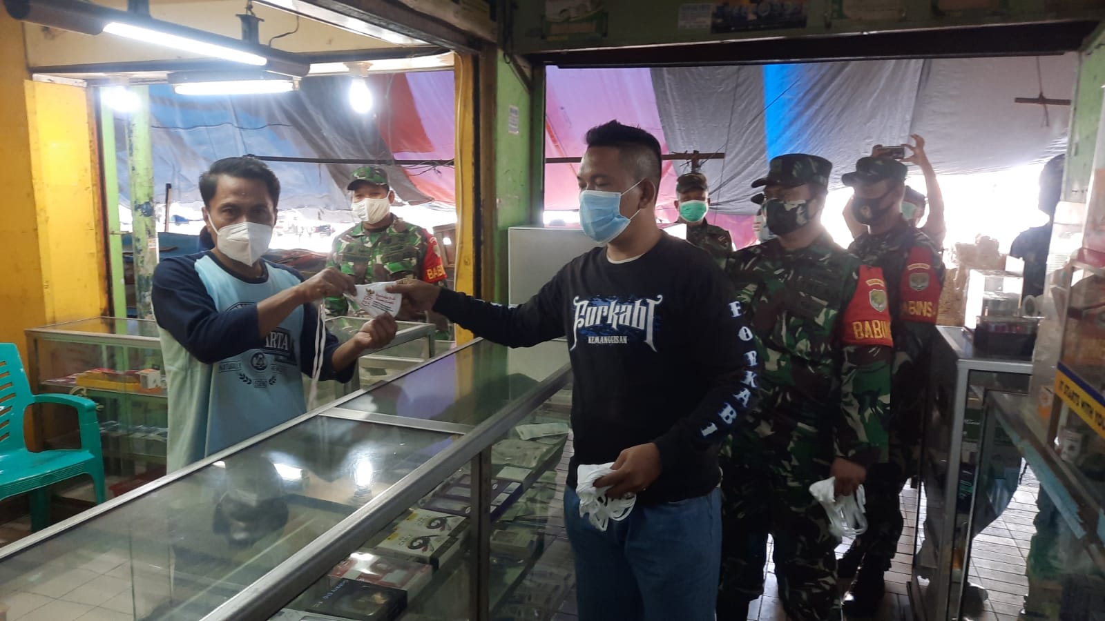 Pembagian masker gratis yang dilaksanakan oleh Koramil 03/GP berkolaborasi bersama ormas Forkabi dan dibantu Security menyasar kepada para pengunjung, pedagang dan pembeli yang ada di Pasar Slipi.