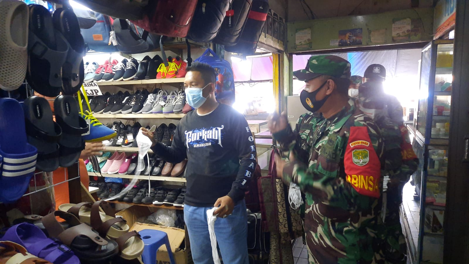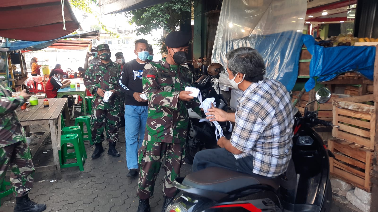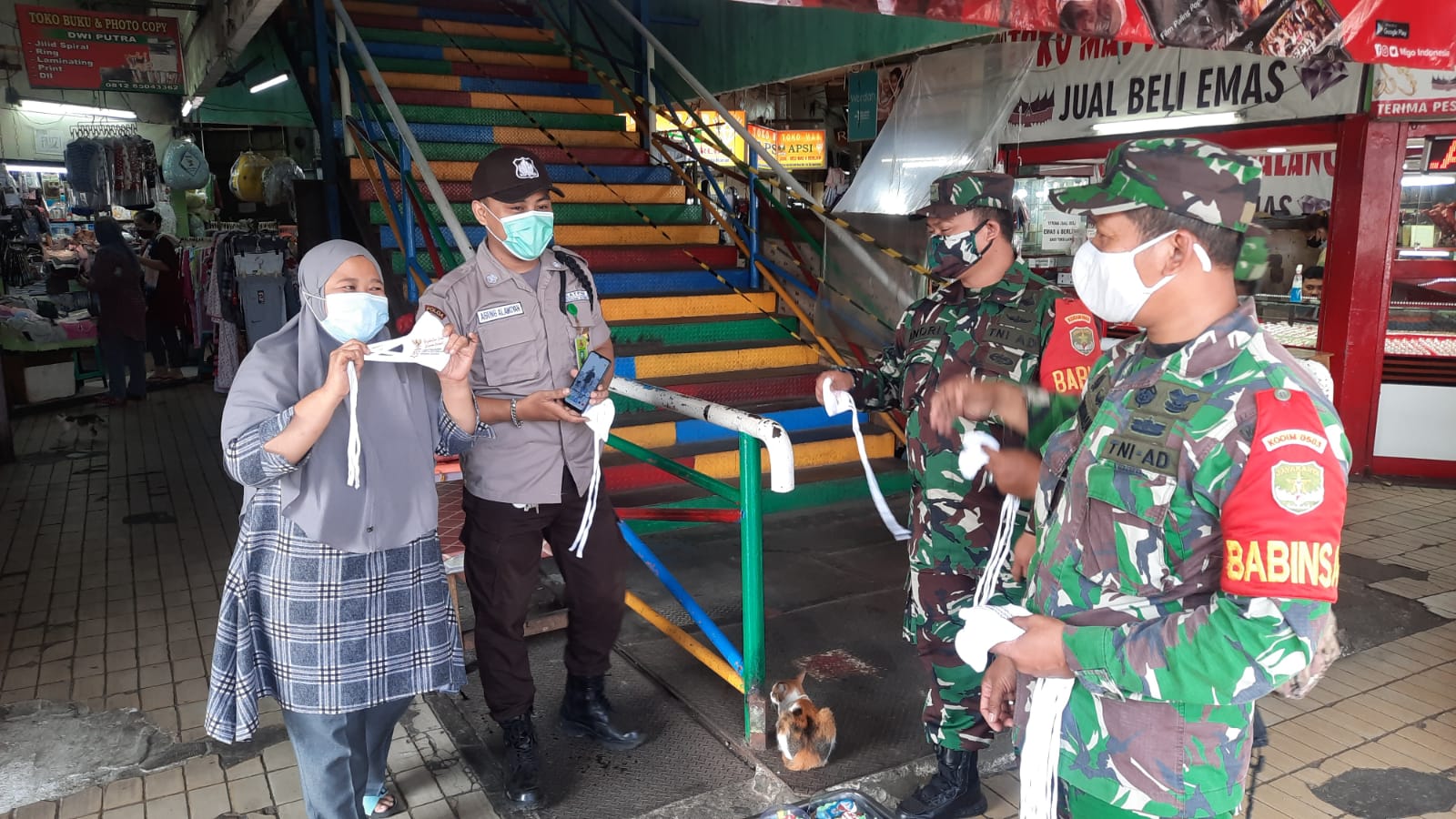 Pembagian masker gratis yang dilaksanakan oleh Koramil 03/GP berkolaborasi bersama ormas Forkabi dan dibantu Security menyasar kepada para pengunjung, pedagang dan pembeli yang ada di Pasar Slipi.