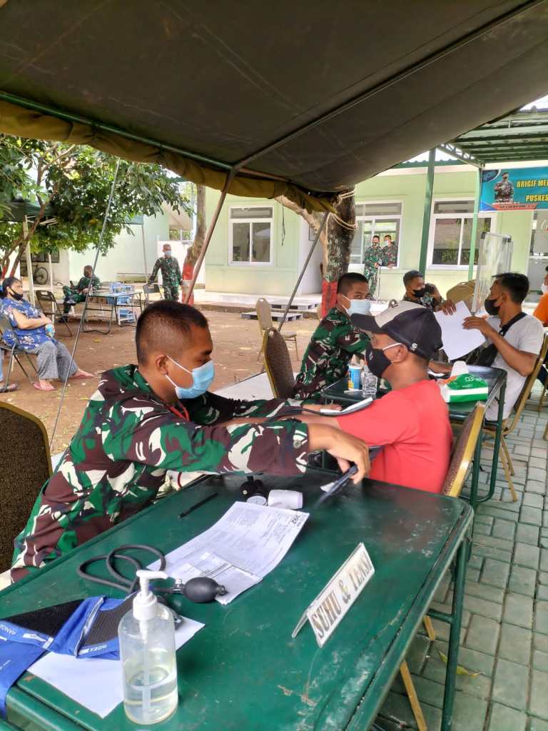 Giat vaksinasi covid 19 yang di laksanakan di halaman Pasi Ter brigif Mekanis 1 PIK/JS, dpc forkabi pasar rebo bersama satgas bersinergi dalam segi pengamanan dan ikut peduli kepada warga dengan membagikan masker gratis untuk kesehatan bersama dan kewaspadaan dini guna memutus mata rantai covid 19.