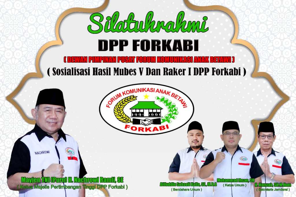 FORKABI NEWS – Ketua umum DPP FORKABI Bang H Muhammad Ihsan SH bersama Babe H Hanzah SH MH sekretaris jenderal DPP FORKABI bersama jajaran pengurus DPP FORKABI silaturahmi dan sosisalisai hasil Rapat Kerja ke satu (1) Dewan Pimpinan Pusat Forum Komunikasi Anak Betawi (RAKER 1 DPP FORKABI) yang telah di laksanakan pada hari minggu (26/09) di hotel Mega Anggrek palmerah yang di ikut oleh para ketua DPD FORKABI sejabodetabek dan perwakilan dalam Raker 1 DPP FORKABI. Jakarta barat