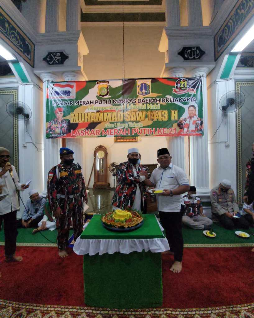 Forkabi News – Bang H Muhammad Ihsan SH Ketua umum Dewan Pimpinan Pusat Forum Komunikasi Anak Betawi (DPP FORKABI) pada hari rabu (27/10) menghadiri milad ormas Laskar merah putih (Lmp) ke 21 dan Maulid Nabi Muhammad SAW bersama ketua umum LMP H.Arsyad canu panglima LMP Daeng jamal ketua Mada DKI Jakarta H. Agus salim kepala Kesbangpol DKI Taufan bakri dan dir binmas Kombes. Pol. Badya Wijaya, S.I.K.S.H.M.Si. Jakarta