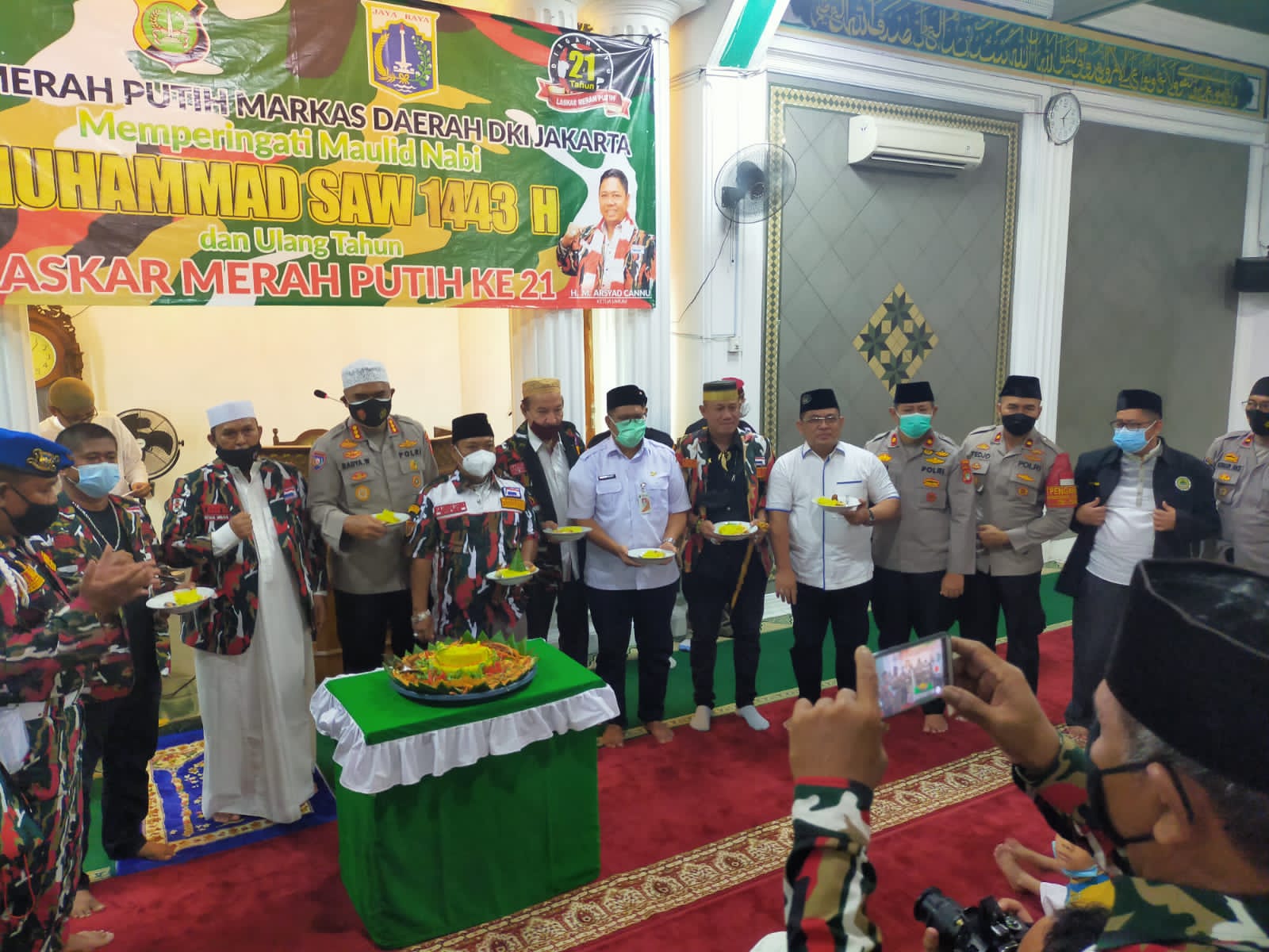 Forkabi News – Bang H Muhammad Ihsan SH Ketua umum Dewan Pimpinan Pusat Forum Komunikasi Anak Betawi (DPP FORKABI) pada hari rabu (27/10) menghadiri milad ormas Laskar merah putih (Lmp) ke 21 dan Maulid Nabi Muhammad SAW bersama ketua umum LMP H.Arsyad canu panglima LMP Daeng jamal ketua Mada DKI Jakarta H. Agus salim kepala Kesbangpol DKI Taufan bakri dan dir binmas Kombes. Pol. Badya Wijaya, S.I.K.S.H.M.Si. Jakarta