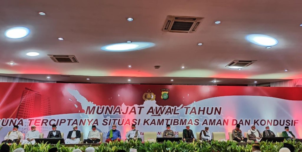 Acara doa bersama diawal tahun tersebut digelar di Balai Pertemuan Polda Metro Jaya.