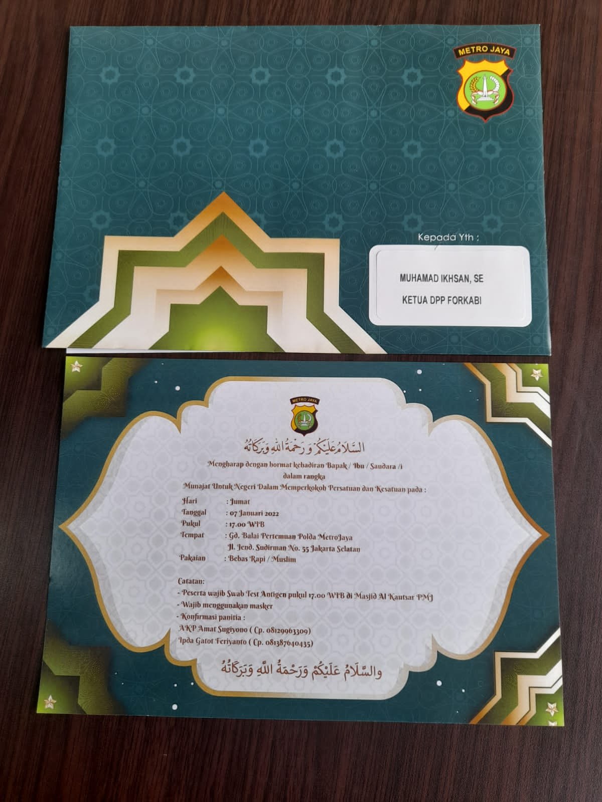 FORKABI NEWS – Bang Mohammad Ihsan SH Ketua umum DPP Forkabi pada hari jumat (07/01) menghadiri Acara doa bersama diawal tahun tersebut digelar di Balai Pertemuan Polda Metro Jaya.