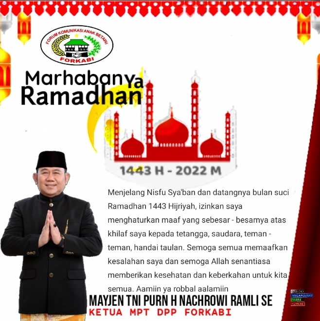 FORKABI NEWS – Menjelang Nisfu Sya’ban dan datangnya bulan suci Ramadhan 1443 Hijriyah, izinkan saya menghaturkan maaf yang sebesar – besarnya atas khilaf saya kepada tetangga, saudara, teman – teman, handai taulan. Semoga semua memaafkan kesalahan saya dan semoga Allah senantiasa memberikan kesehatan dan keberkahan untuk kita semua. Aamiin ya robbal aalamiin