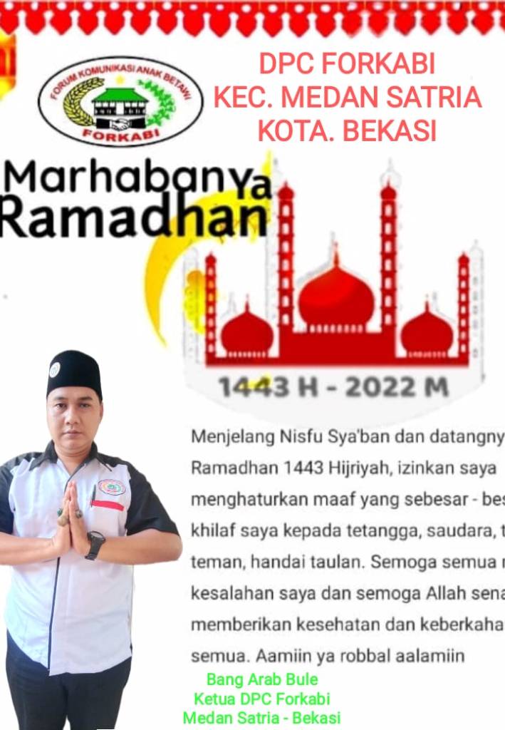 FORKABI NEWS – Menjelang Nisfu Sya’ban dan datangnya bulan suci Ramadhan 1443 Hijriyah, izinkan saya menghaturkan maaf yang sebesar – besarnya atas khilaf saya kepada tetangga, saudara, teman – teman, handai taulan. Semoga semua memaafkan kesalahan saya dan semoga Allah senantiasa memberikan kesehatan dan keberkahan untuk kita semua. Aamiin ya robbal aalamiin
