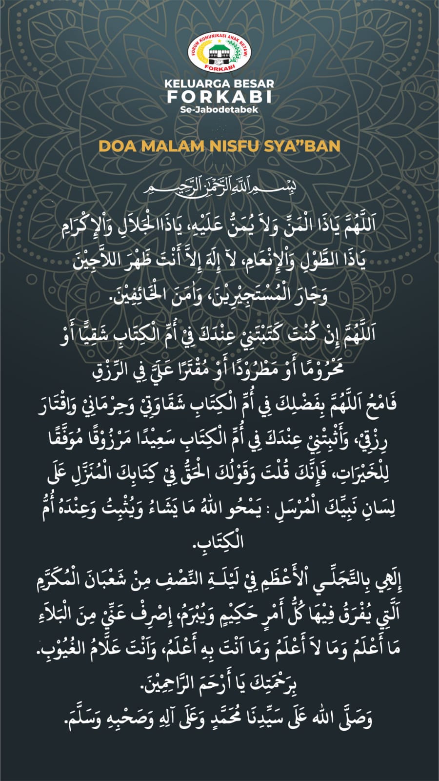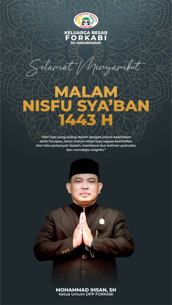 FORKABI NEWS – Menjelang Nisfu Sya’ban dan datangnya bulan suci Ramadhan 1443 Hijriyah, izinkan saya menghaturkan maaf yang sebesar – besarnya atas khilaf saya kepada tetangga, saudara, teman – teman, handai taulan. Semoga semua memaafkan kesalahan saya dan semoga Allah senantiasa memberikan kesehatan dan keberkahan untuk kita semua. Aamiin ya robbal aalamiin