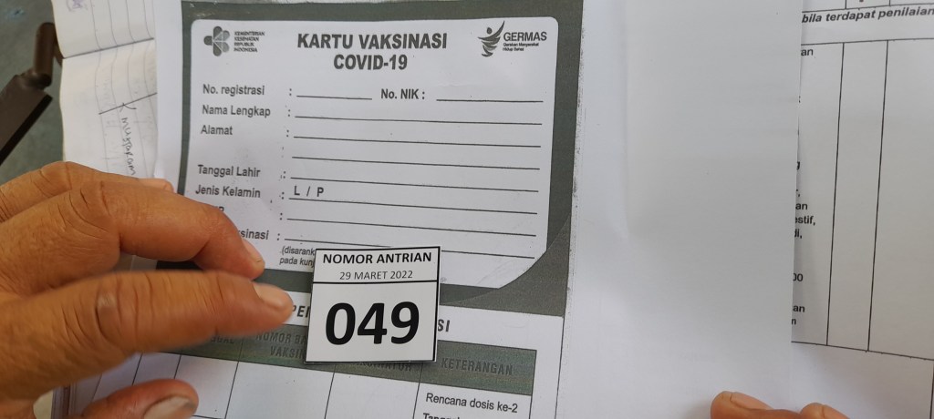 Antusias warga untuk vaksinasi booster hingga mengantri dengan nomer antrian sampai ribuan pastinya dalam protokol kesehatan dari pemerintah.