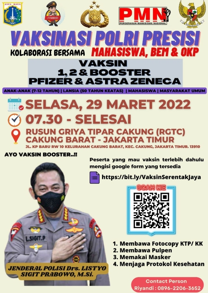 Forkabi news – Vaksinasi Polri presisi pada hari selasa (29/03) berlokasi di Rumah Susun Griya Tipar Cakung (RGTC) kelurahan cakung barat jl kampung bary RW 10 di hadiri oleh warga rumah susun dan warga wilayah kampung baru sejak pukul 07.30 sampai selesai. Cakung