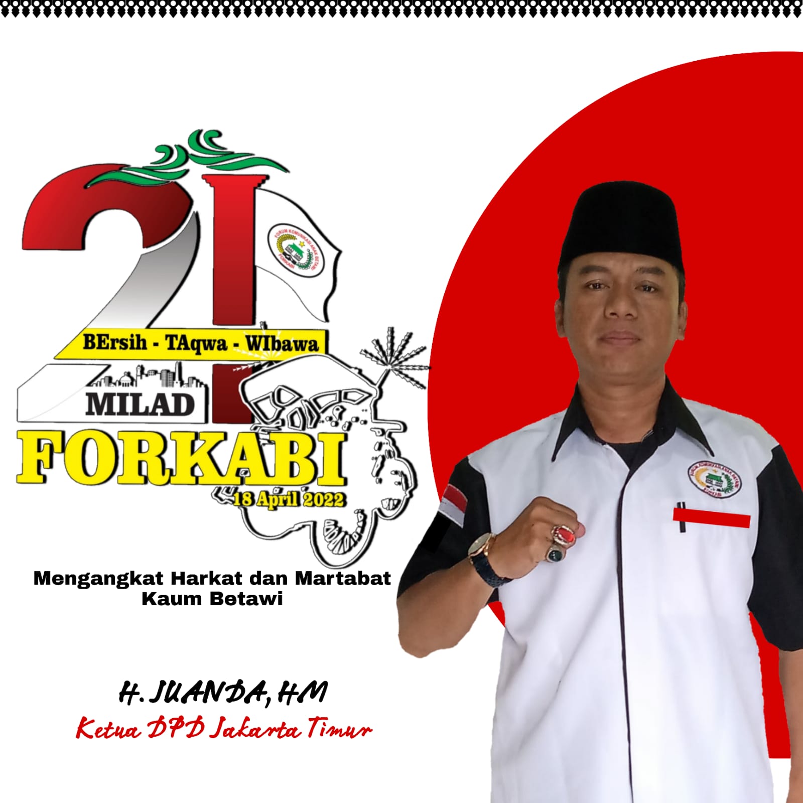 Forkabi News – Organisasi Masyarakat Kedaerahan Forum Komunikasi Anak Betawi (FORKABI) telah memasuki usia yang ke 21 tahun pada tanggal 18 April 2022 yang sudah terdaftar dan SAH di mata negara dan menurut hukum berdasarkan SKT Mendagri No : 01-00-00-/012/01/2021 dan berdasarkan undang-undang tentang organisasi masyarakat nomer 16 tahun 2017 pasal 16.