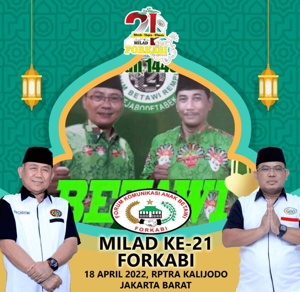 Forkabi News – Organisasi Masyarakat Kedaerahan Forum Komunikasi Anak Betawi (FORKABI) telah memasuki usia yang ke 21 tahun pada tanggal 18 April 2022 yang sudah terdaftar dan SAH di mata negara dan menurut hukum berdasarkan SKT Mendagri No : 01-00-00-/012/01/2021 dan berdasarkan undang-undang tentang organisasi masyarakat nomer 16 tahun 2017 pasal 16.