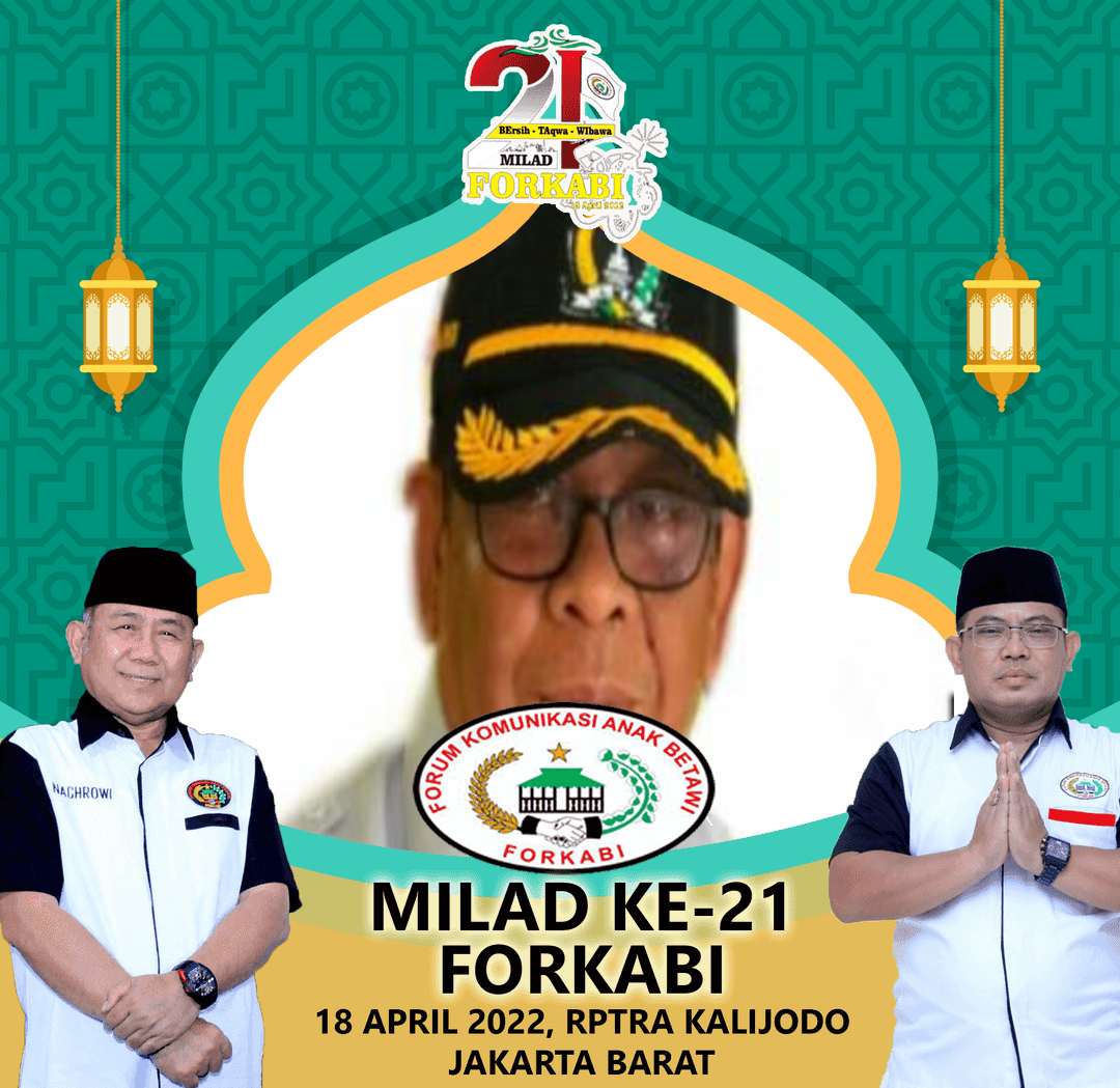 Forkabi News – Organisasi Masyarakat Kedaerahan Forum Komunikasi Anak Betawi (FORKABI) telah memasuki usia yang ke 21 tahun pada tanggal 18 April 2022 yang sudah terdaftar dan SAH di mata negara dan menurut hukum berdasarkan SKT Mendagri No : 01-00-00-/012/01/2021 dan berdasarkan undang-undang tentang organisasi masyarakat nomer 16 tahun 2017 pasal 16.