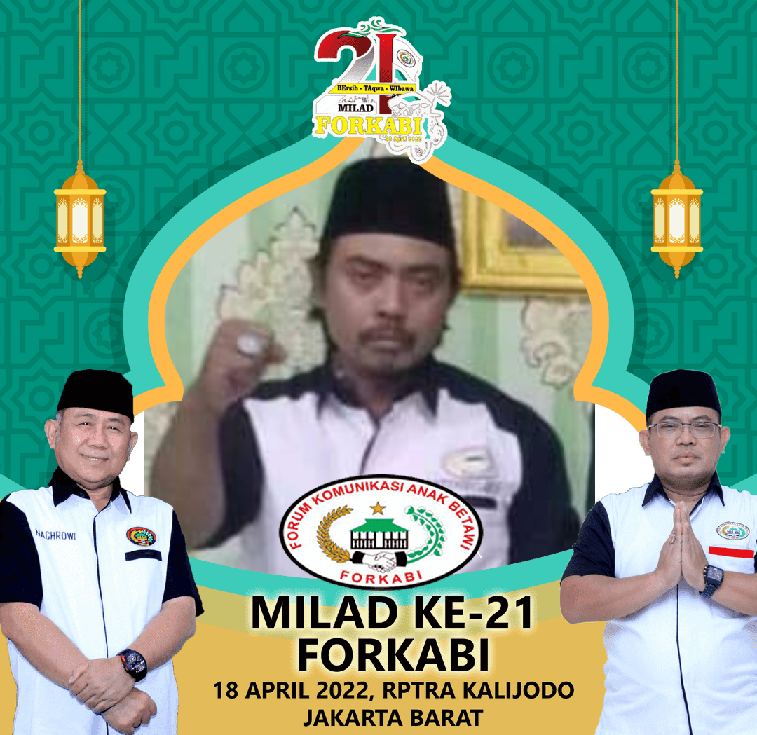 Forkabi News – Organisasi Masyarakat Kedaerahan Forum Komunikasi Anak Betawi (FORKABI) telah memasuki usia yang ke 21 tahun pada tanggal 18 April 2022 yang sudah terdaftar dan SAH di mata negara dan menurut hukum berdasarkan SKT Mendagri No : 01-00-00-/012/01/2021 dan berdasarkan undang-undang tentang organisasi masyarakat nomer 16 tahun 2017 pasal 16.