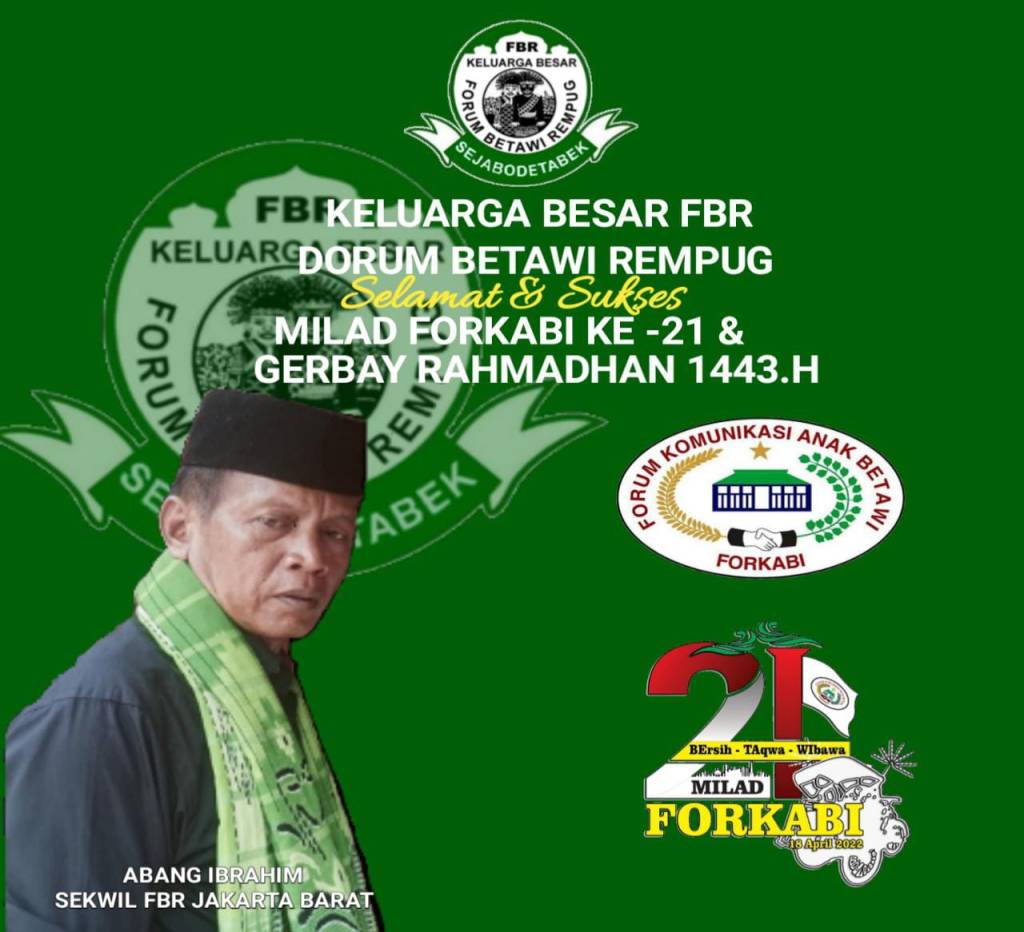 Forkabi News – Organisasi Masyarakat Kedaerahan Forum Komunikasi Anak Betawi (FORKABI) telah memasuki usia yang ke 21 tahun pada tanggal 18 April 2022 yang sudah terdaftar dan SAH di mata negara dan menurut hukum berdasarkan SKT Mendagri No : 01-00-00-/012/01/2021 dan berdasarkan undang-undang tentang organisasi masyarakat nomer 16 tahun 2017 pasal 16.