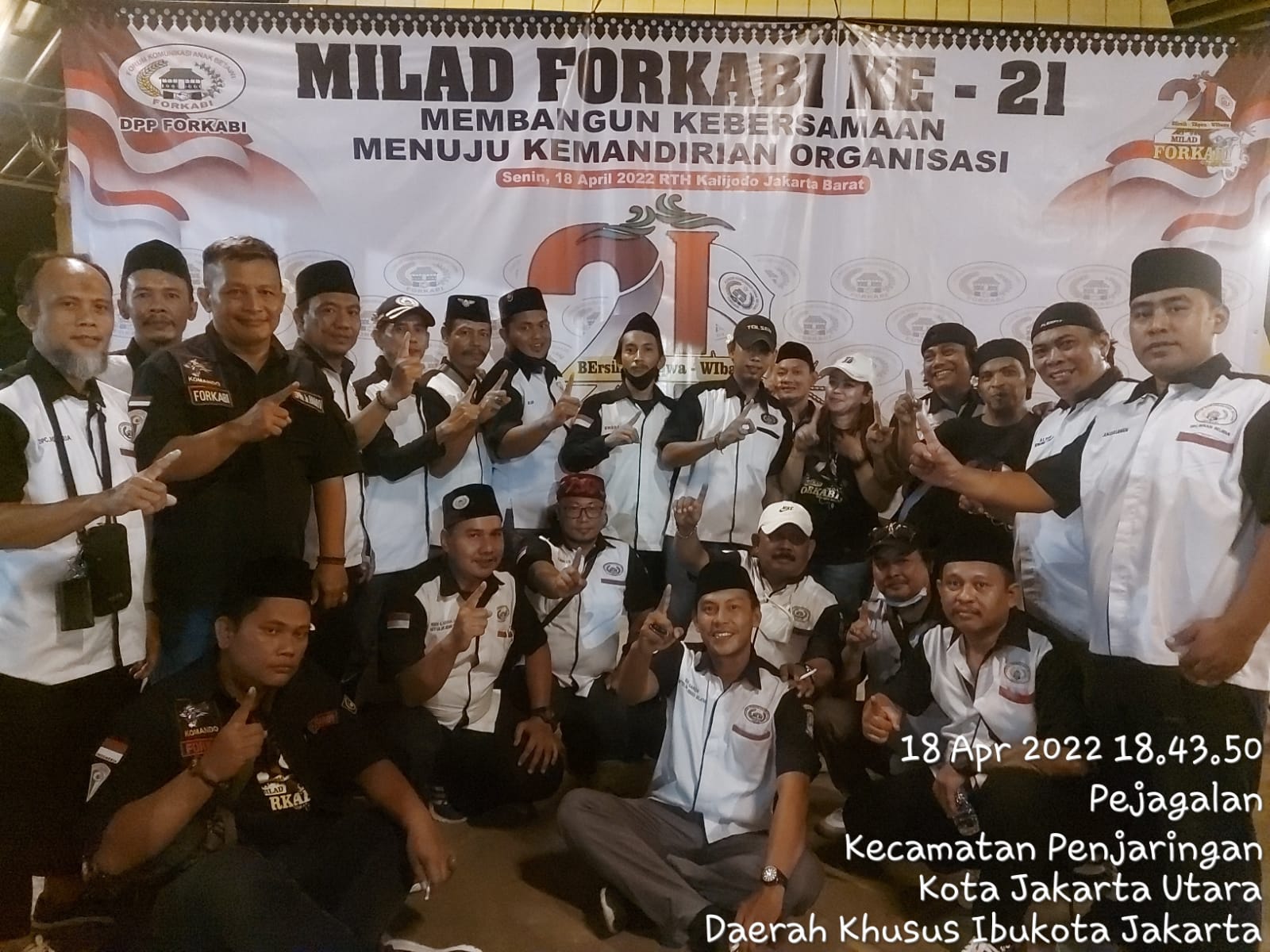 Forkabi News – Organisasi Masyarakat Kedaerahan Dewan Pimpinan Pusat Forum Komunikasi Anak Betawi (DPP FORKABI) tepat pada tanggal 18 april 2022 merupakan hari bersejarah FORKABI berulang tahun ke 21 tahun yang di selenggarakan di RTH kalijodoh Rt 09/ Rw 05 pejagalan penjaringan jakarta utara yang memiliki SKT Mendagri No : 01-00-00-/012/01/2021 dan berdasarkan undang-undang tentang organisasi masyarakat nomer 16 tahun 2017 pasal 16 Dan terdaftar di Hak Kekayaan Intelektual (29/05) dengan Nomor : HKI.2-KI.2000940/2021.