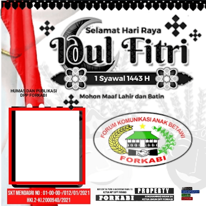 Forkabi News – Organisasi Masyarakat Kedaerahaan Forum Komunikasi Anak Betawi (FORKABI) peran serta meriahkan logo, bingkai Hari Raya Idul Fitri 1443 hijriah 2022.
