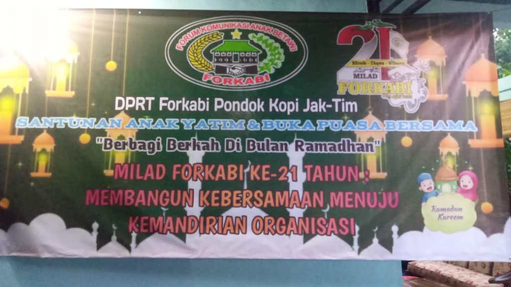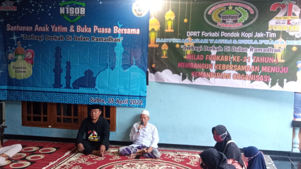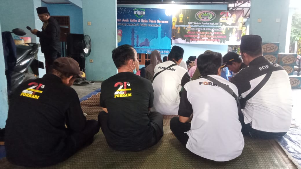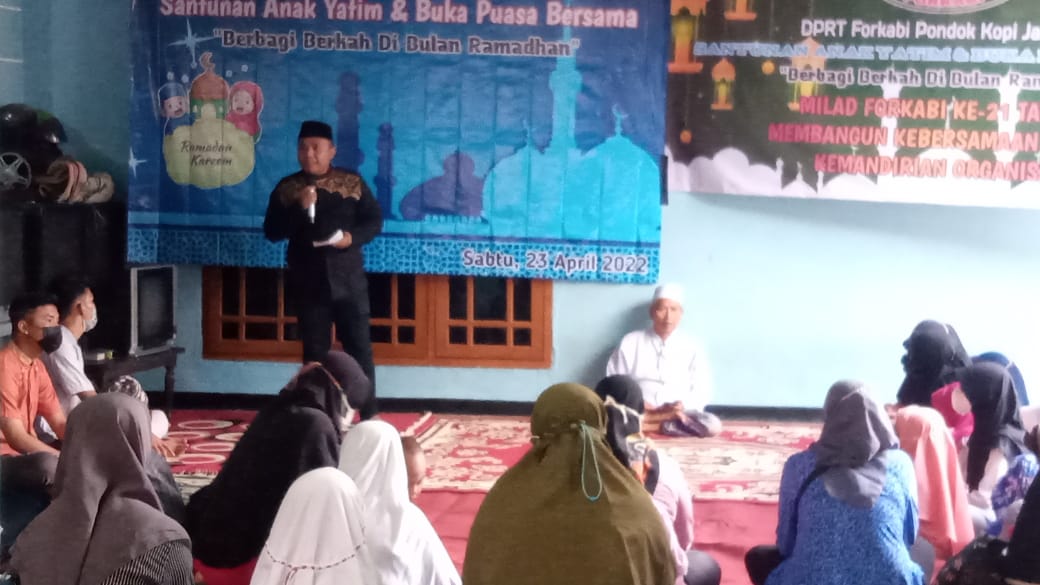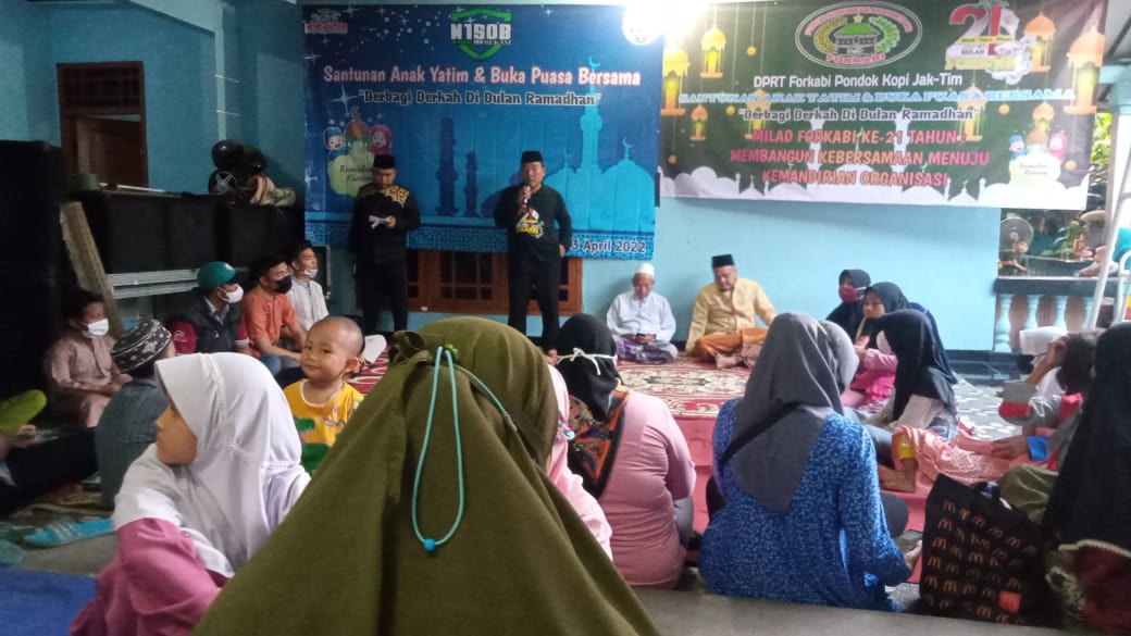Forkabi news – Dalam rangka milad forkabi ke 21 tahun di bulan suci Ramadhan 1443 Hijriah Dewan Pimpinan Ramting Forum Komunikasi Anak Betawi (Dprt FORKABI) kelurahan pondok kopi (26/04) mengadakan giat santuan anak yatim, berbagi takjil kepada warga sore hari yang sedang menjalankan ibadah puasa Ramadhan 1443 H dan berbuka puasa bersama yang pimpin oleh Bang Amin ketua Dprt FORKABI pondok kopi. Duren sawit