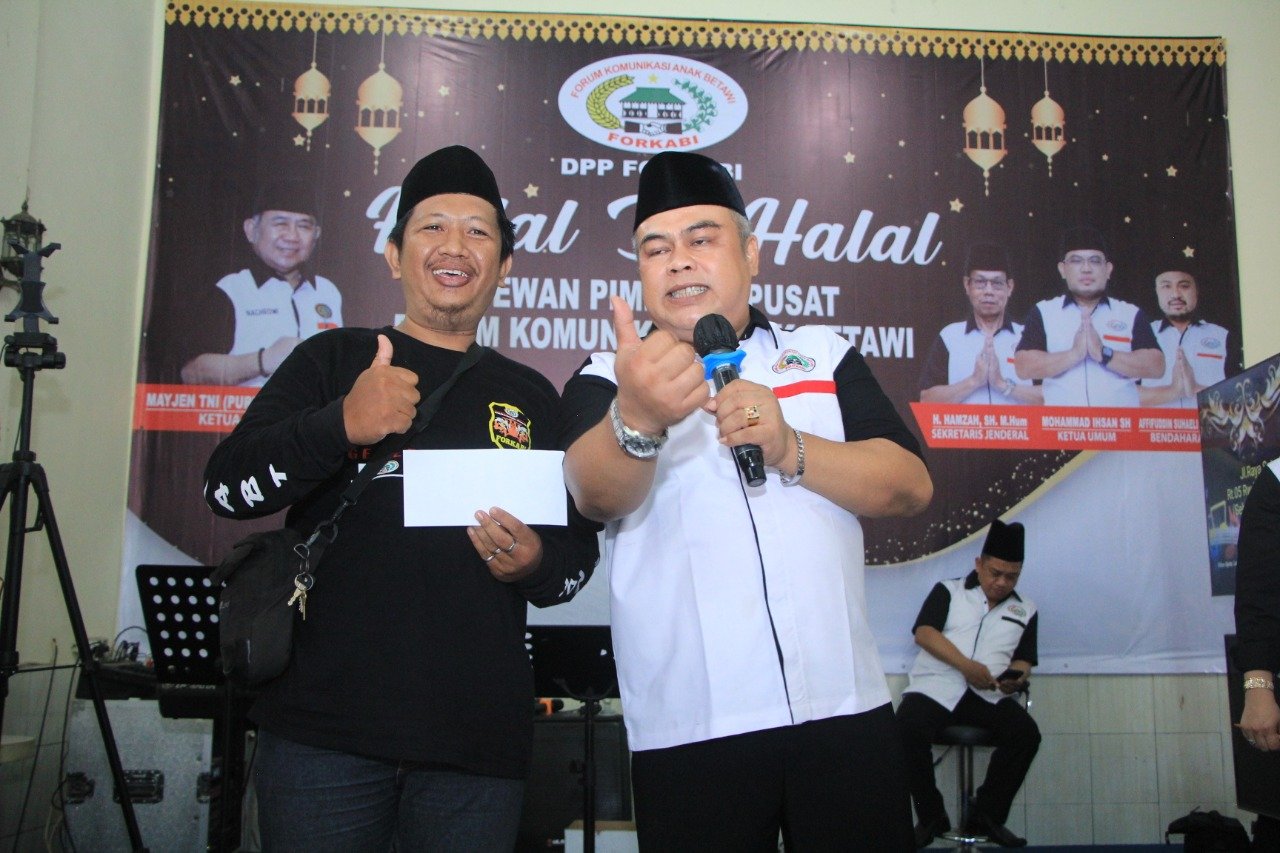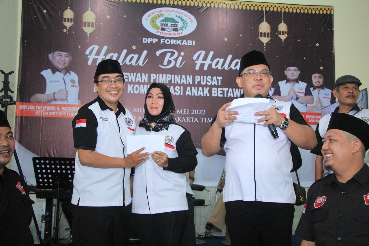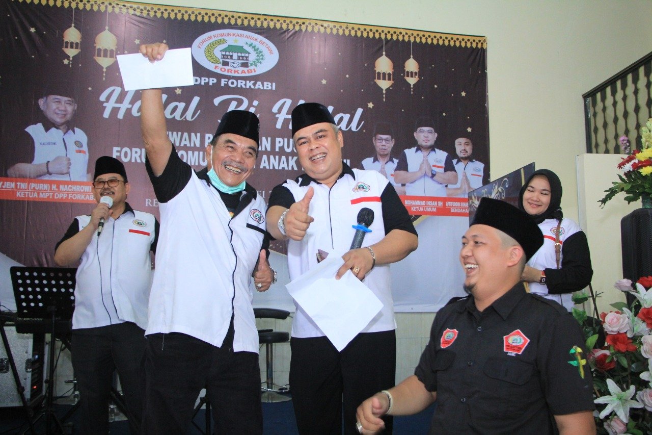 FORKABI NEWS – Halal Bi Halal Dewan Pimpinan Pusat Forum Komunikasi Anak Betawi (DPP FORKABI) di bawah Komando Mayjen TNI Purn H Nachrowi Ramli SE ketua Majelis Pertimbangan Tinggi (MPT DPP FORKABI) dan H Mohammad Ihsan SH Ketua Umum DPP FORKABI suasana Idul Fitri 1443 Hijriah 2022 hari Minggu pukul 09.00 – selesai (15/05) berlokasi di Caffe Asyiik setu cipayung terbatas Jakarta timur