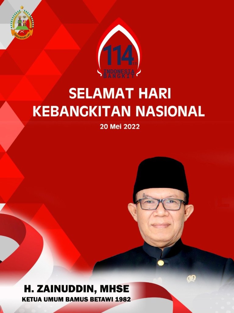 Badan Musyawarah Suku Betawi 1982 (BAMUS BETAWI 1982) Di bawah komando Mayjen TNI DR Hc H Eddie M Nalapraya Tokoh Adat Betawi dan H Zainudin MH SE ketua umum Bamus Betawi 1982 meriahkan Hari Kebangkitan Nasional dengan biingkai poto.