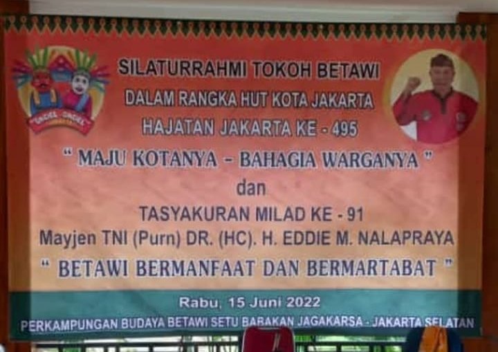 FORKABI NEWS – Silaturahmi Tokoh Betawi Dalam Rangka Hari Ulang Tahun (HUT) Kota Jakarta yang bertema “Hajatan Jakarta 495” Maju kotanya bahagia warganya dan Tasyakuran Milad ke 91 Mayjen TNI Purn DR (HC) H Eddie M Nalapraya “BETAWI BERMANFAAT DAN BERMARTABAT” pada hari rabu (16/06) berlokasi di perkampungan budaya setu babakan jagakarsa. Jakarta selatan