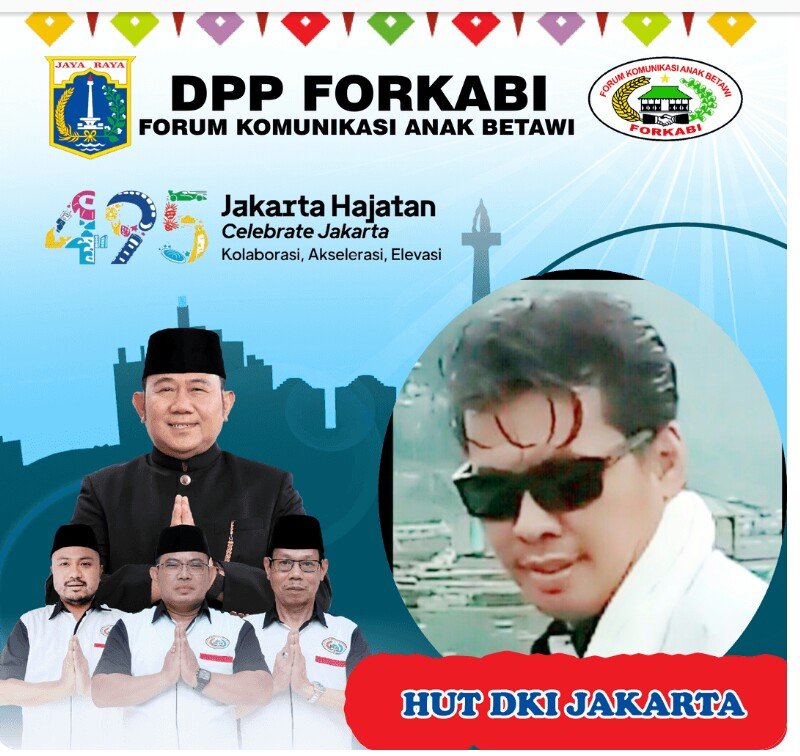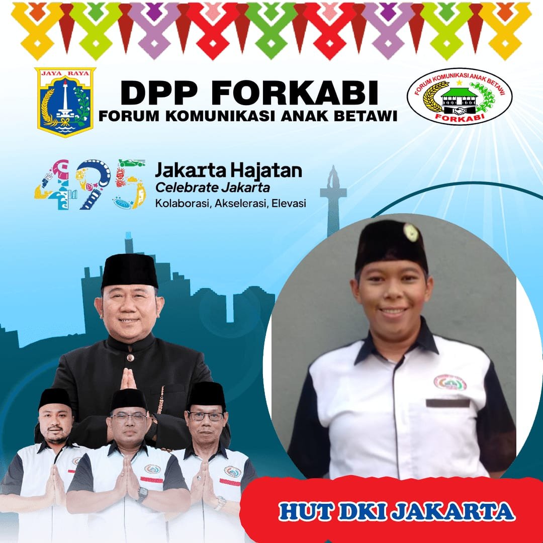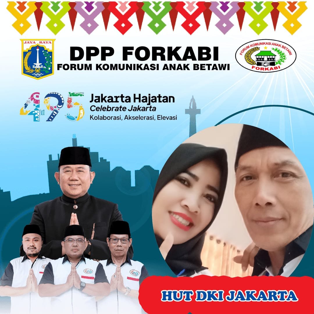 FORKABI NEWS – Dewan Pimpinan Pusat Forum Komunikasi Anak Betawi (DPP FORKABI) sejabodetabek mengucapkan selamat Hari Ulang Tahun (HUT DKI JAKARTA KE 495) 22 juni 2022 yang bertema Hajatan Jakarta pada tanggal 25 Juni 2022.