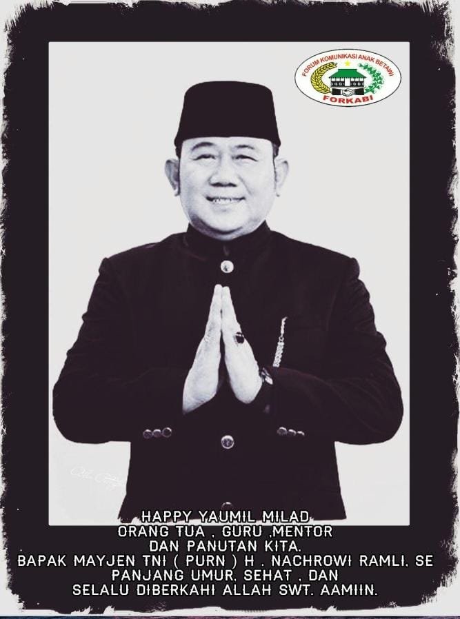 FORKABI NEWS – Babe Mayjen TNI Purn Nachrowi Ramli SE Ketua Majelis Pertimbangan Dewan Pimpinan Pusat Forum Komunikasi Anak Betawi (Ketua MPT DPP FORKABI) yang ke 71 tahun pada hari sabtu (16/07) dan Minggu (17/07) masih ramai berbagai ucapan di media sosial dari pengurus dpp forkabi, badan otonom, dan dpd forkabi sejabodetabek hingga whatsapp, karangan bunga, facebook, youtube, twetter dan media soial lainnya.