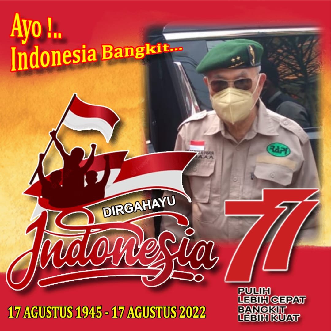 FORKABI NEWS – MAYJEN TNI Dr HC H EDDY M NALAPRAYA TOKOH ADAT BETAWI, Ketua Majelis Adat Bamus Betawi 1982 dan Pernah menjadi WAKIL GUBERNUR DKI JAKARTA 1984 – 1987 sambut Dirgahayu kemerdekaan Republik Indonesia ke 77 tahun 2022 dengan bingkai poto keren dan sesuai tema “Pulih Lebih Cepat Bangkit Lebih Kuat” oleh pemerintah RI.