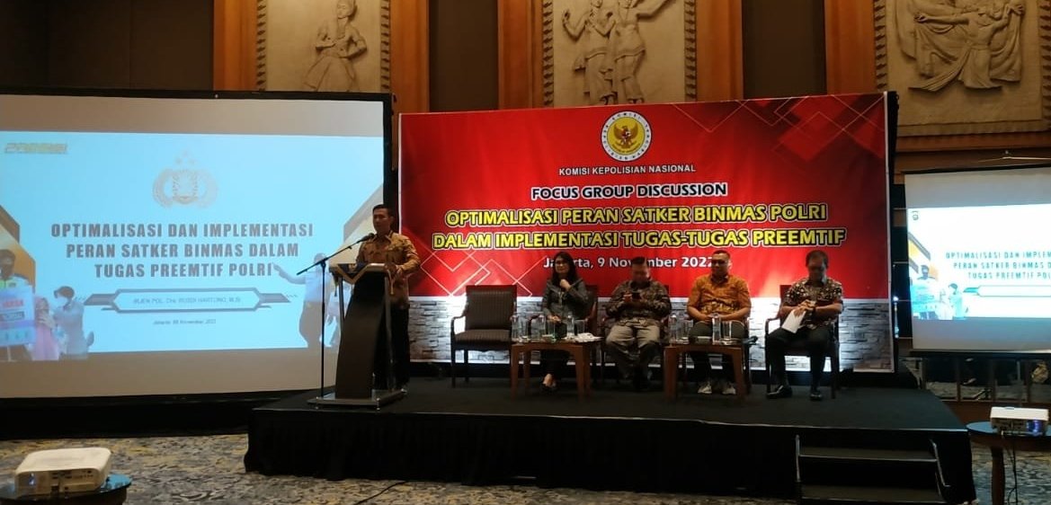 Forkabinews – Komisi Kepolisian Nasional mengadakan giat Focus Group Discussion (FGD) hasil penelitian dengan tema “Optimalisasi Peran Satker Binmas Dalam Implementasi Tugas – tugas Preemtif” hari Rabu (09/11) pukul 09.00 WIB – Selesai berlokasi di Hotel Aryaduta Menteng Jalan Prajurit KKO Usman dan Harun 44-48 Jakarta Pusat.