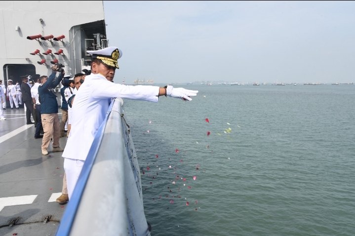 Sementara itu Wagub AAL Brigjen TNI (Mar) Edy Prakoso mewakili Gubernur AAL Laksamana Muda TNI Denih Hendrata turut mengikuti upacara Tabur Bunga yang dilaksanakan di geladak KRI dr. Soeharso saat sandar di Dermaga Madura Koarmada II, Ujung, Surabaya.