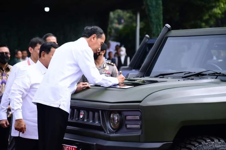FORKABI NEWS – Usai memberikan arahan dalam Rapat Pimpinan Kementerian Pertahanan Tahun 2023, Presiden Joko Widodo menjajal kendaraan operasional satuan yang dijuluki “Maung” di halaman Kantor Kementerian Pertahanan, Jakarta, pada Rabu, 18 Januari 2023. Presiden juga meresmikan nama “Maung” untuk kendaraan tersebut.