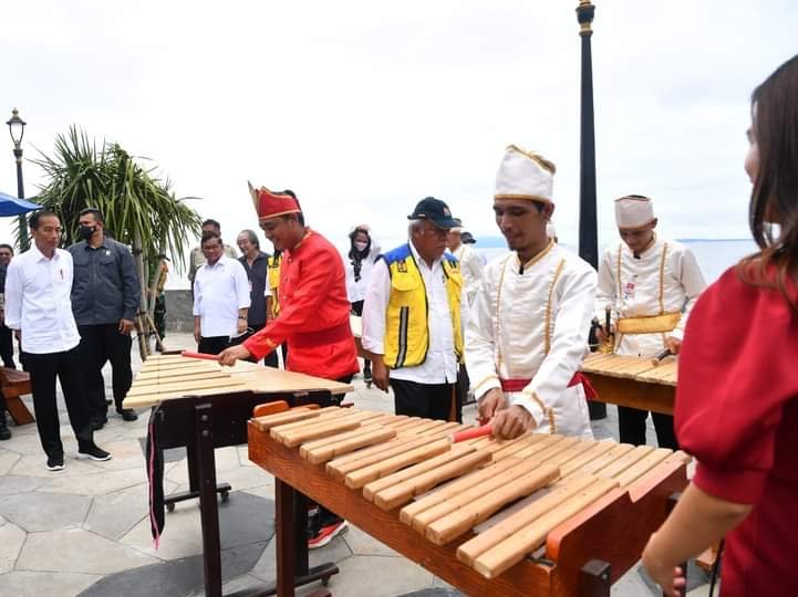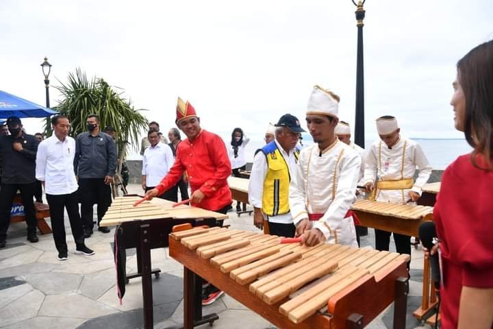 Alunan Musik Kolintang Sambut Presiden Jokowi di Pantai Malalayang