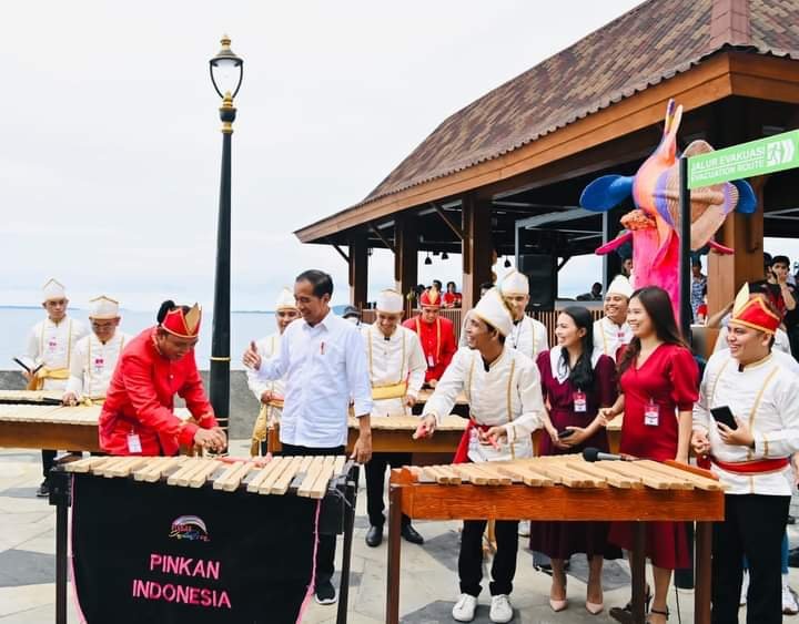 Alunan Musik Kolintang Sambut Presiden Jokowi di Pantai Malalayang