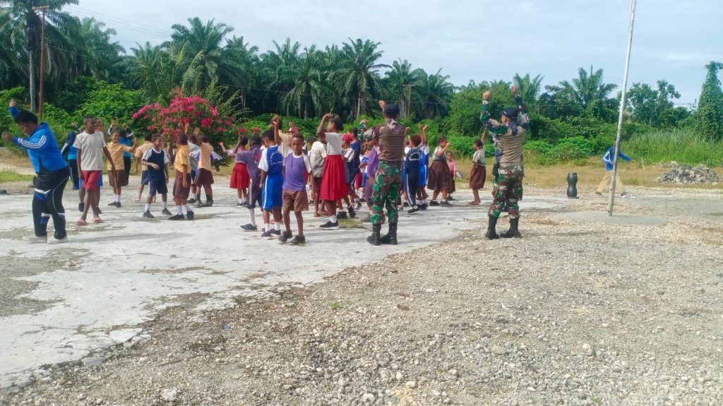 Peduli terhadap kesehatan jasmani, Satgas Yonif 132/BS Pos Arsokota menggelar acara senam pagi bersama siswa-siswi SD lnpres Kwimi. Kegiatan ini bertujuan untuk menanamkan semangat olahraga dan pola hidup sehat terhadap generasi muda Di Papua.