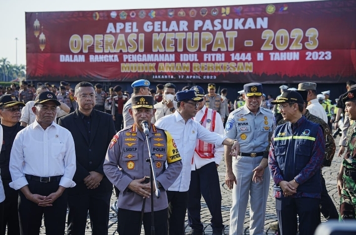 Hal ini ditegaskan Kapolri saat memimpin apel gelar pasukan sekaligus menandai Operasi Ketupat 2023 berlangsung secara serentak di seluruh wilayah Indonesia, bertempat di Lapangan Silang Monas, Jakarta Pusat, Senin, 17 April 2023.