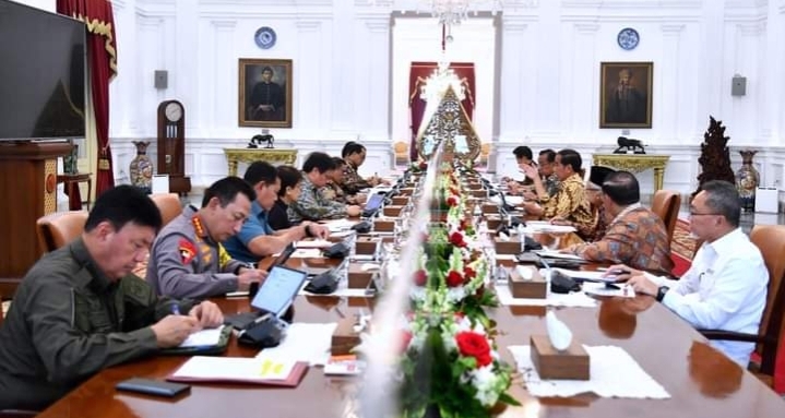 Presiden Joko Widodo menggelar rapat terbatas (ratas) bersama sejumlah Menteri Kabinet Indonesia Maju, pada Kamis, 27 April 2023, di Istana Merdeka, Jakarta. Dalam rapat tersebut, Kepala Negara membahas sejumlah persiapan pelaksanaan Konferensi Tingkat Tinggi (KTT) ke-42 ASEAN yang akan berlangsung di Labuan Bajo, Provinsi Nusa Tenggara Timur (NTT) pada 10-11 Mei 2023 mendatang.