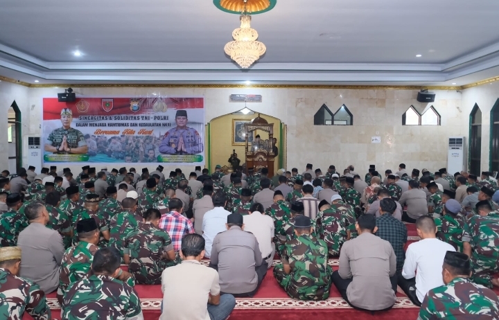 Perkuat Soliditas Dan Sinergitas TNI-Polri, Kapolda Sulsel dan Pangdam XIV Hasanuddin beserta Jajaran Gelar Sholat Dhuhur dan Makan Siang Bersama