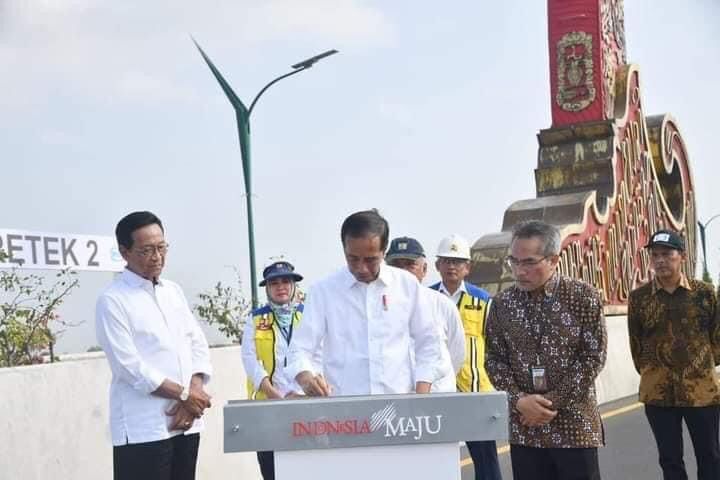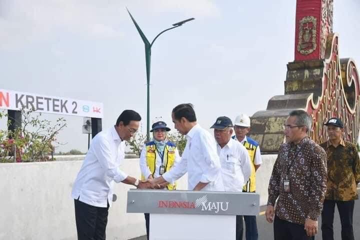 Presiden Joko Widodo meresmikan Jembatan Kretek 2 yang terletak di Kabupaten Bantul, Daerah Istimewa Yogyakarta (DIY) pada Jumat, 2 Juni 2023. Jembatan sepanjang 2,7 kilometer yang menyebrangi Sungai Opak tersebut dibangun dengan nilai investasi mencapai Rp364 miliar.
