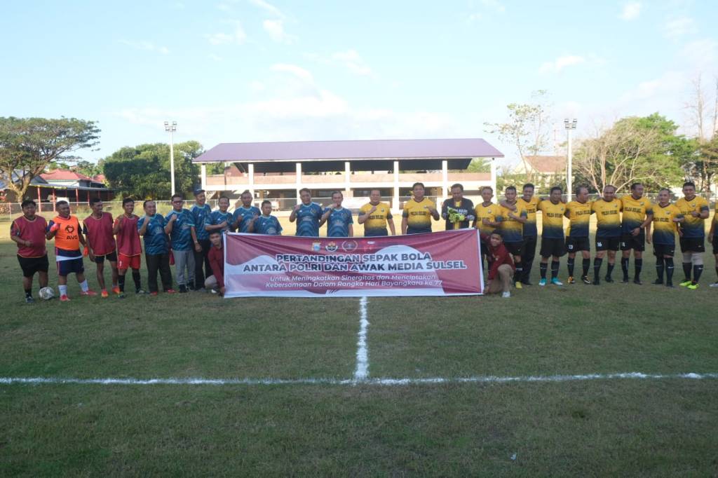 Meriahkan Hari Bhayangkara Ke -77 Polda Sulsel vs Jurnalis Tanding Sepakbola Persahabatan