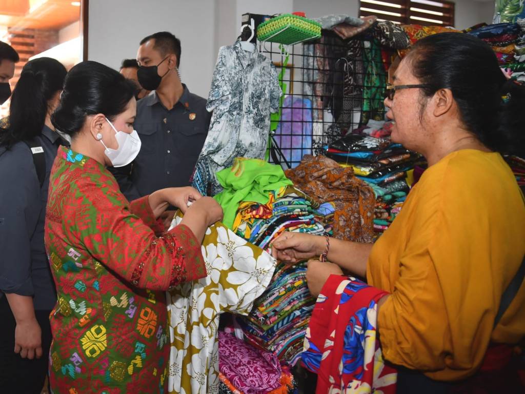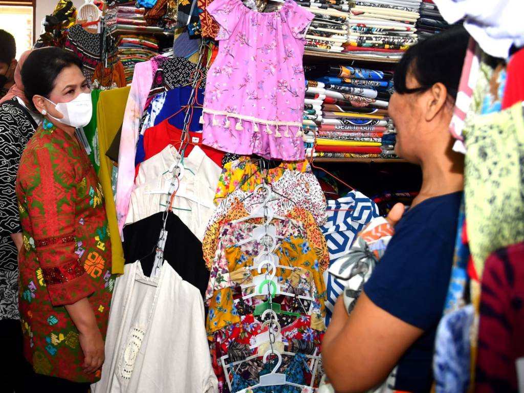 Salah satu penjual pakaian, Wayan, mengaku senang sekaligus gugup bisa bertemu langsung dan jualannya dibeli oleh Ibu Iriana. “Senang, deg-degan juga bertemu Ibu Iriana,” ucapnya.